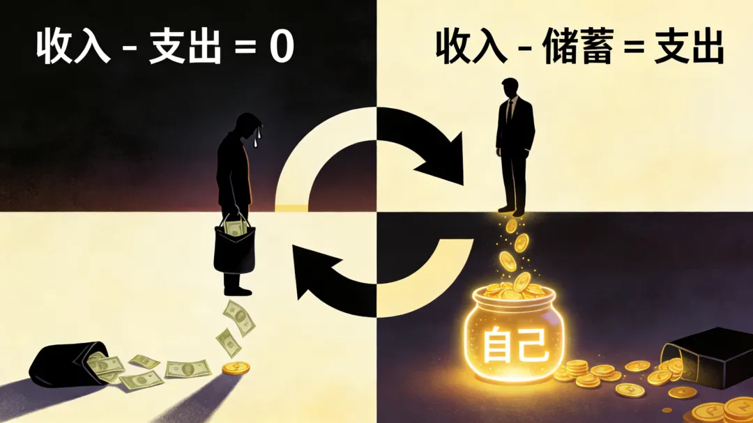 作者建议将财务公式改为:收入 - 储蓄 = 支出。这意味着储蓄不再是可有可无的余数,而是必须优先满足的固定项目。