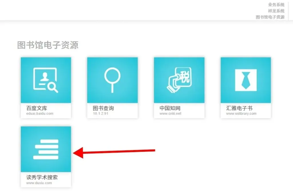 打开商校门户,点击【读秀】图标,即可直接使用,无需登录。
