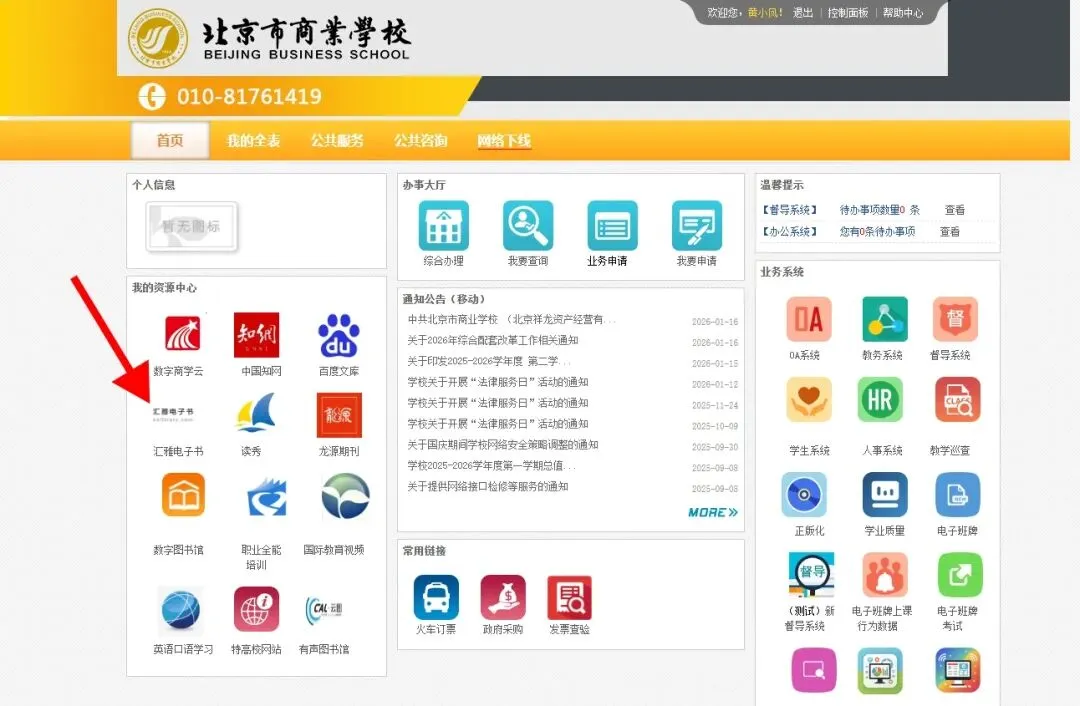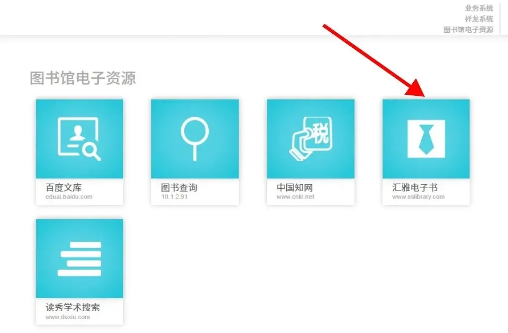 打开商校门户,点击【汇雅电子书】图标,即可直接使用,无需登录。
