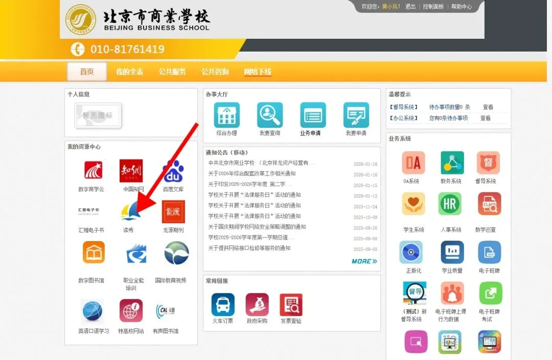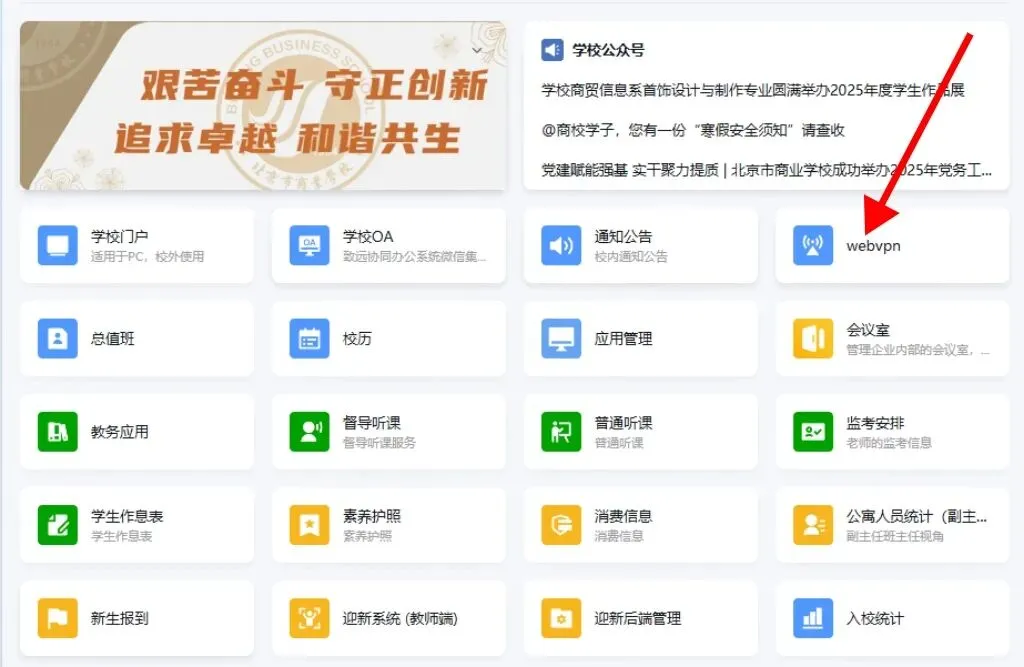 打开商校门户,点击【汇雅电子书】图标,即可直接使用,无需登录。