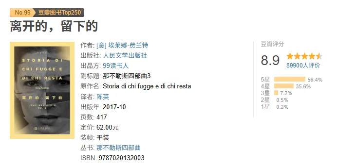 这部作品是费兰特笔下的那不勒斯四部曲的第三卷,聚焦中年的两位女性以及她们之间既亲密又充满张力的关系。叙述者在未婚夫彼得罗一家的帮助下出版了第一部小说,品尝到了出版带来的喜悦;而留在那不勒斯的莉拉则仍处于贫困、工厂工作的卑微境遇。为了让莉拉的处境发生转变,我再次像守护者般介入她的生活,动用丈夫及其家人们的人脉,促成莉拉和恩佐在区域内率先掌握计算机技能,凭借坚韧的学习力逐步积累财富。此时我与莉拉之间的成就感与竞争感再次交错。婚后,我开始面对创作危机,而平淡的、中产阶级式的婚姻也让我感到疲惫。对社会变革抱持冷淡态度的彼得罗希望我放弃作家身份;当我在扮演“母亲”和“妻子”这些角色时,内心的撕裂与紧张感不断加剧。莉拉对我新作的指摘更让我怀疑自己:我所受的教育与学识是否只是表面的光鲜,永远无法触及莉拉那种近乎粗野却真实的表达所揭示的真相。直到有一天,丈夫突然把尼诺带回了家……📚 资源获取