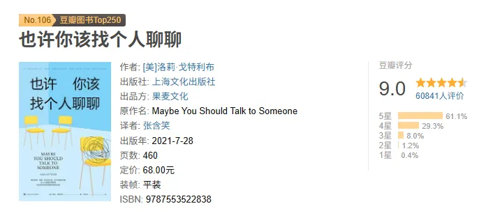 这本书以一个心理治疗师的回忆为线索,讲述发生在诊室里的系列故事。在这间狭小而封闭的空间里,来访者常常揭示出最真实、最脆弱的一面;同时,他们也在这里获得陪伴与倾听,获得对自我、关系与生活的洞察、成长与改变。 书中聚焦四位来访者:一位四十多岁的 Hollywood 制片人,事业有成但自以为是,总觉得身边人都是蠢货;一位三十多岁、刚刚步入婚姻却被诊断出绝症、时日无多的大学女教师;一位六十九岁的老妇人,经历过三段婚姻,深感孤独与绝望,若情况再无改善便打定在七十岁生日当天结束生命;以及一位二十多岁、来自创伤性家庭背景并有酗酒问题、在爱情里屡遭挫折的年轻女子。 此外,还有第五位求助者——治疗师自己。她是一名单身且在职场打拼的母亲,四十多岁时曾遭遇失恋,几近崩溃。朋友建议她找人聊聊,于是她也走进另一位治疗师的咨询室。当她从来访者的身份坐在对方的沙发上诉说心事时,才更深切地体会到心理治疗所具备的疗愈与促进改变的力量。 全书通过治疗师与来访者的双向视角,揭示治疗过程的张力与美妙,并让人理解:无论出身如何不同,人类共同面对的困扰其实极为相似——爱与被爱、遗憾、选择、掌控感、不确定性、死亡等议题,构成每个人必须学习面对的人生课题。书中的痛苦与困境在现实生活中亦能引发共鸣与希望。 这本书在美国被视为2019年的心理自助类佳作,登上《纽约时报》《时代》《人物》《综艺》等主流媒体的年度必读榜单;在亚马逊年度销量榜、哈佛商学院的年度推荐等榜单上也名列前茅;有声书版本在 Audible 还夺得非虚构类第一名。上市仅一个月便冲上亚马逊总榜前列与《纽约时报》畅销榜,出版两年后已获得全球四十多种语言的授权翻译,累计销量超过七十万册,并正在改编成电视剧,主演由曾出演《绝望主妇》的知名演员伊娃·朗格利亚担纲。 全球知名的心理学大师、斯坦福大学精神病学名誉教授欧文·亚隆为书作序,盛赞其大胆、直率、故事性强且发人深省。国内心理学界的李松蔚则担任专业审校并撰写序言,指出本书像在灵魂的微观空间里一点点探寻,越往里走越深入,尽管黑暗而宁静,却在无声处迸发出雷鸣般的洞见。📚 资源获取