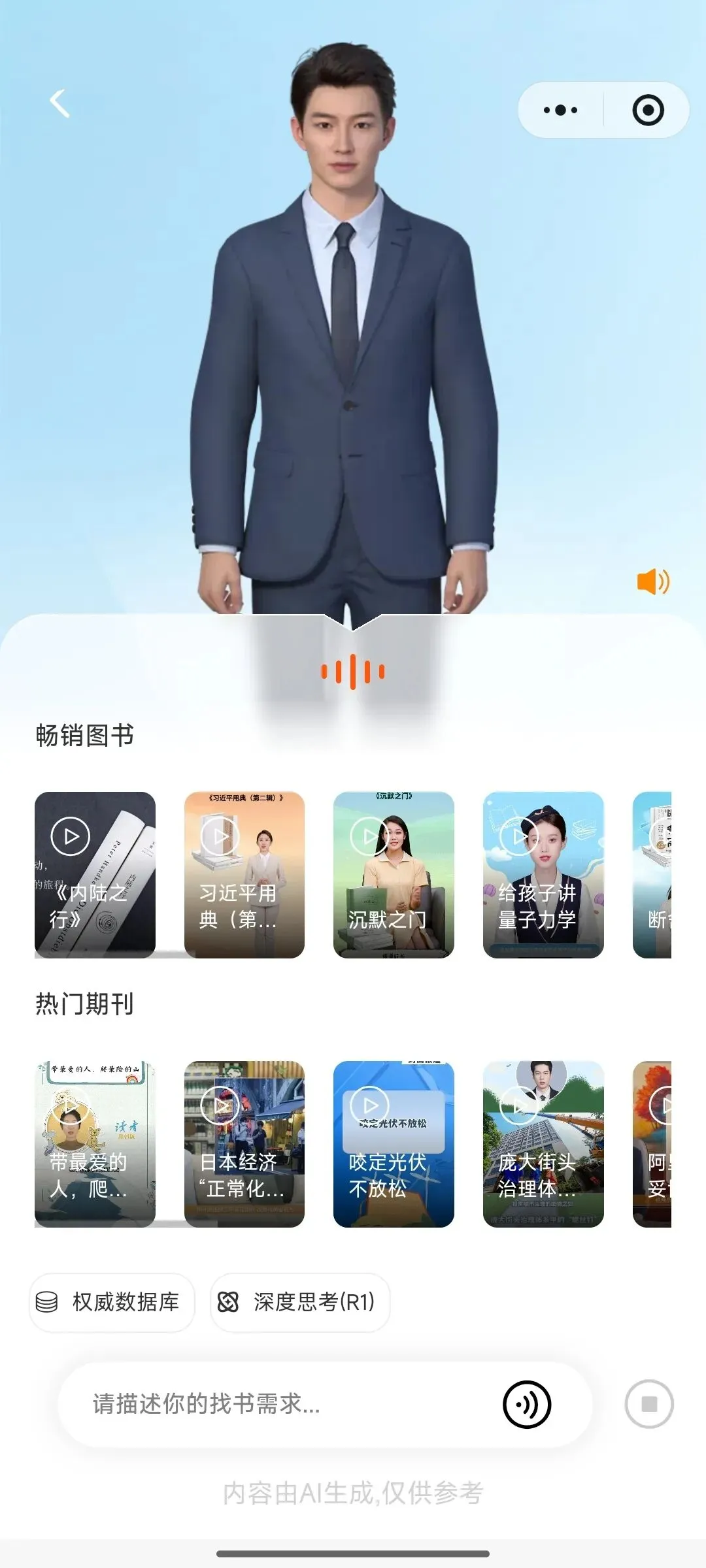 深度融合热门图书、畅销期刊、有声听书、短视频、AI播客等全领域资源,实现“资源→短视频→智能阅读”全链路升级。