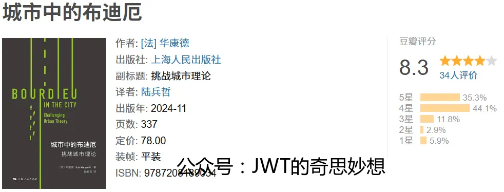 《城市中的布迪厄:挑战城市理论》是法国社会学家华康德运用皮埃尔·布迪厄理论框架分析当代城市问题的学术著作。全书通过“场域”“惯习”“资本”等核心概念,深入剖析城市空间中的权力运作与社会不平等现象。