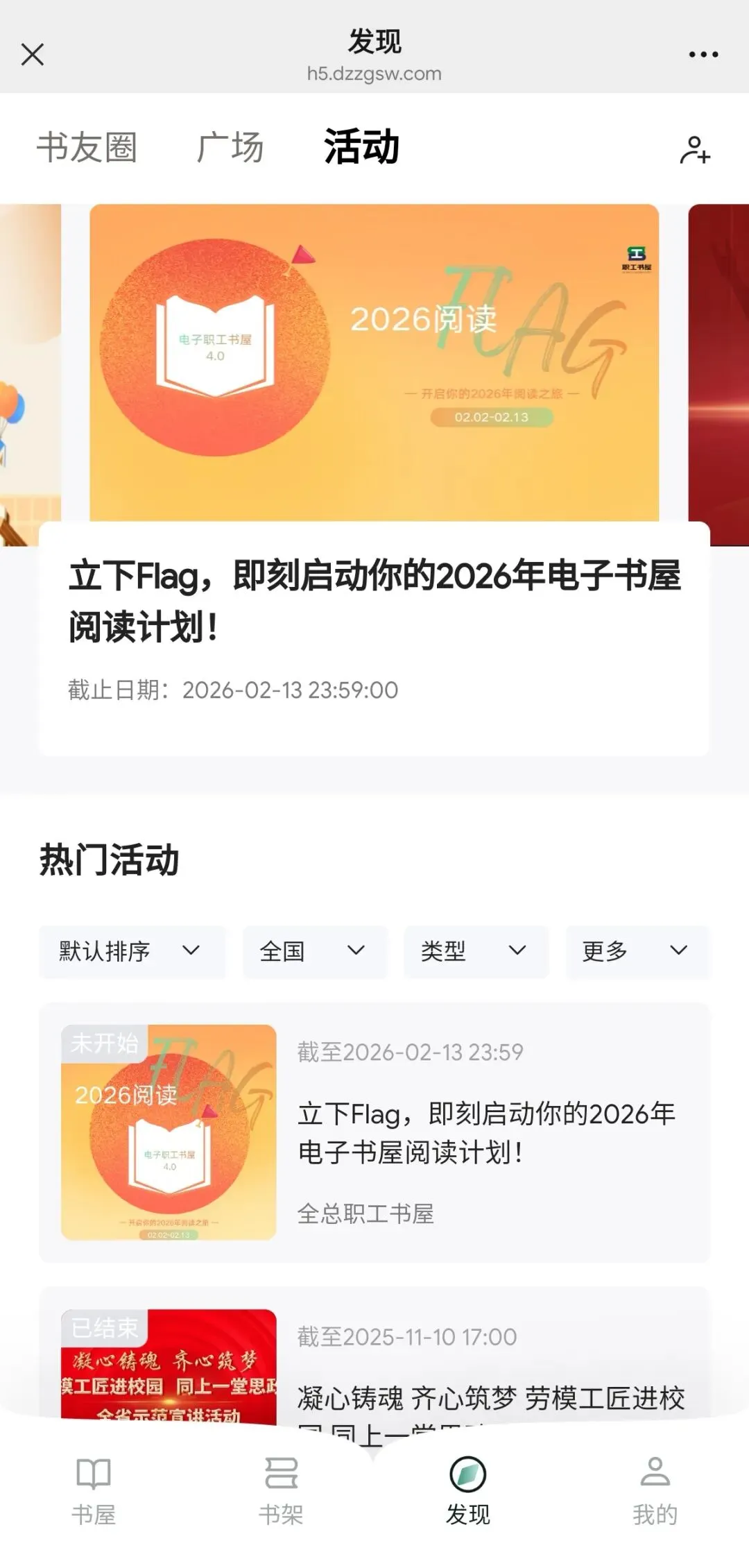 在“书屋”/“发现”/“我的”找到活动入口