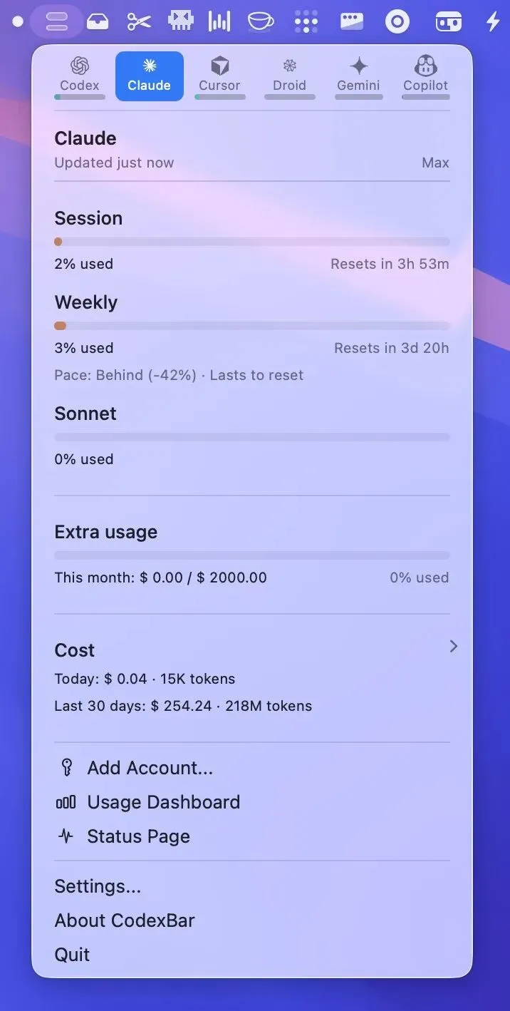9. steipete/CodexBar - AI使用统计工具 - GitHub Trending (4,100 stars)