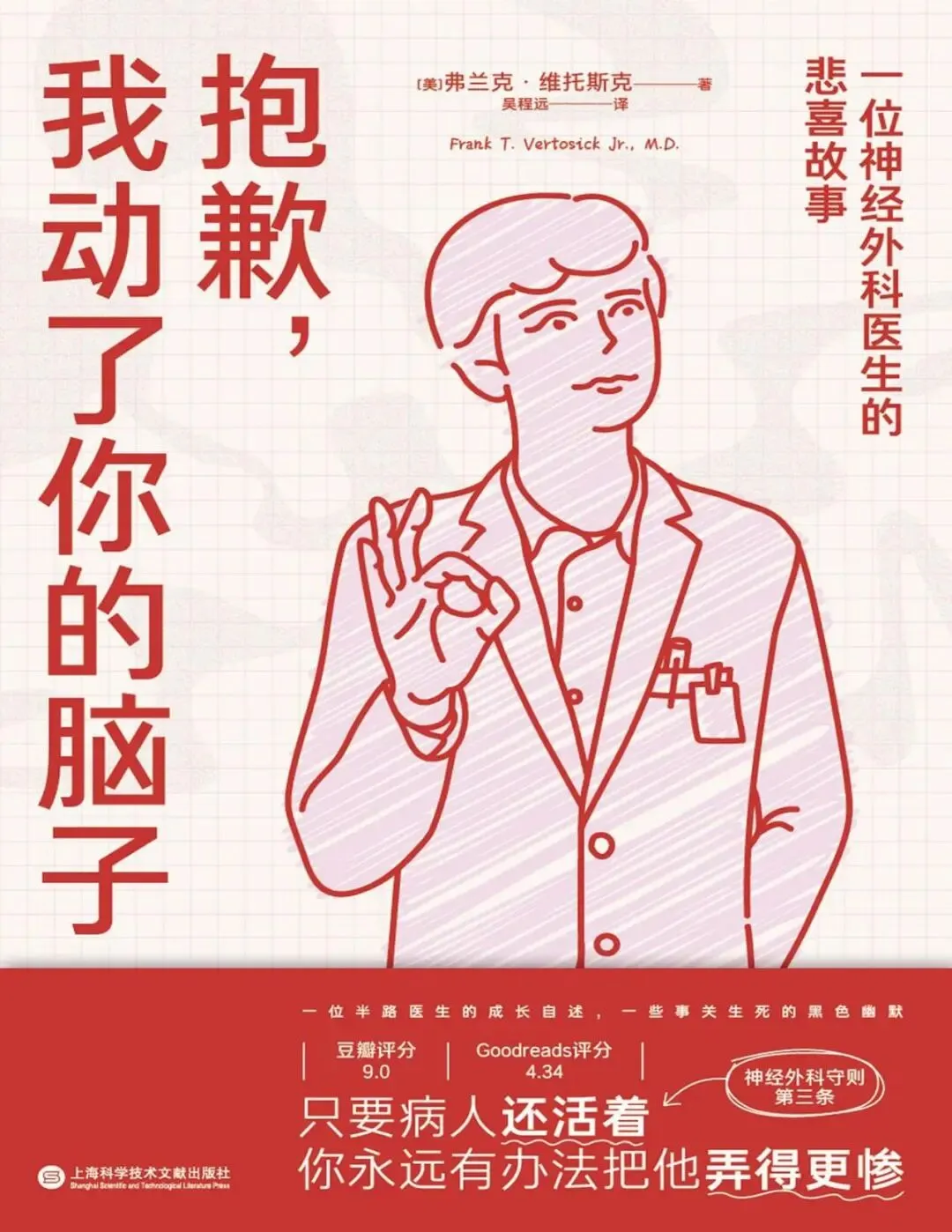 弗兰克・维托斯克的这部医疗随笔,用黑色幽默讲述了神经外科医生的悲喜人生。作者结合真实病例,记录了手术台前的生死瞬间,以及医生与患者的情感联结。书中没有专业术语的堆砌,只有对生命的敬畏与对人性的洞察,能让你在笑声与泪水中,重新理解 “医生” 这个职业的重量,以及医学的局限与温度。