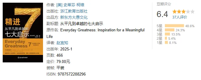 史蒂芬·柯维在每篇故事的末尾附上见解和评论。他针对人们在日常学习、工作以及生活中可能会面临的困难,以极富洞察力和远见的视角,从这些故事中提炼出诸多值得借鉴和学习的认知理念及行事原则,旨在引导人们从迷茫、烦躁、内耗和无意义的状态中解脱出来,帮助人们在当下这个充满不确定性的时代,每天精进一点,最终从平凡走向卓越。