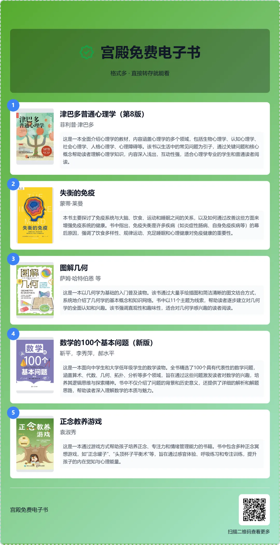 当前位置:首页>电子书资讯>【免费电子书】津巴多普心理学,失衡的免疫,图解几何,数学的100个基本问题,正念教养游戏