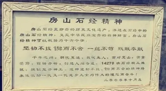 房山石经是我国现存规模佛教石经中规模最大、历史最久的文化珍品。存于北京房山县云居寺石经山。始刻于公元七世初叶的隋代,历经唐、辽、金、元、明各代,绵延一千余年,镌刻不断,共有大小经14278块,刻佛经1122部、357卷。它是研究我国古代社会经济、政治、文化、艺术,特别是研究佛教历史和典籍的重要资料,也是世界一宗宝贵的文化遗产。