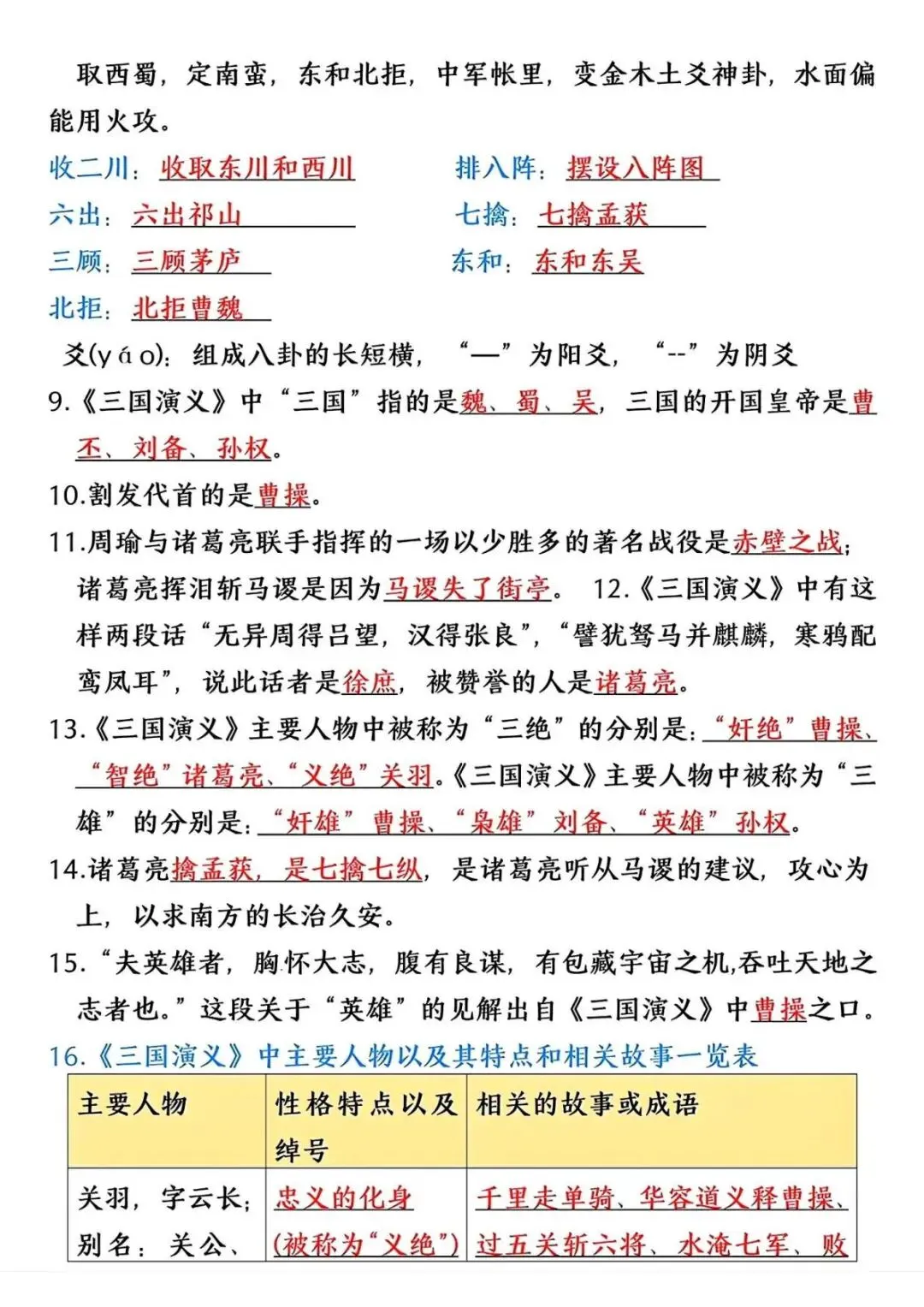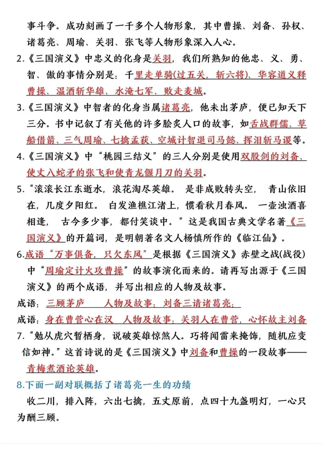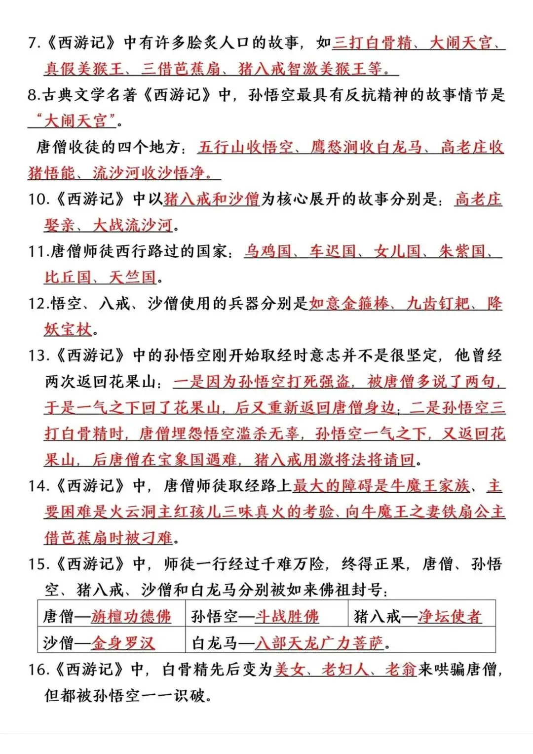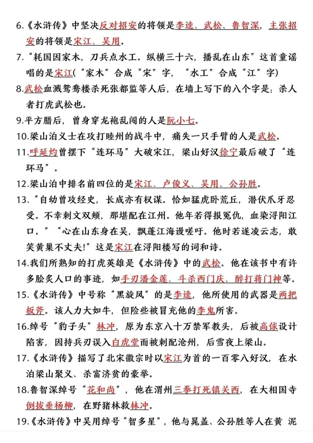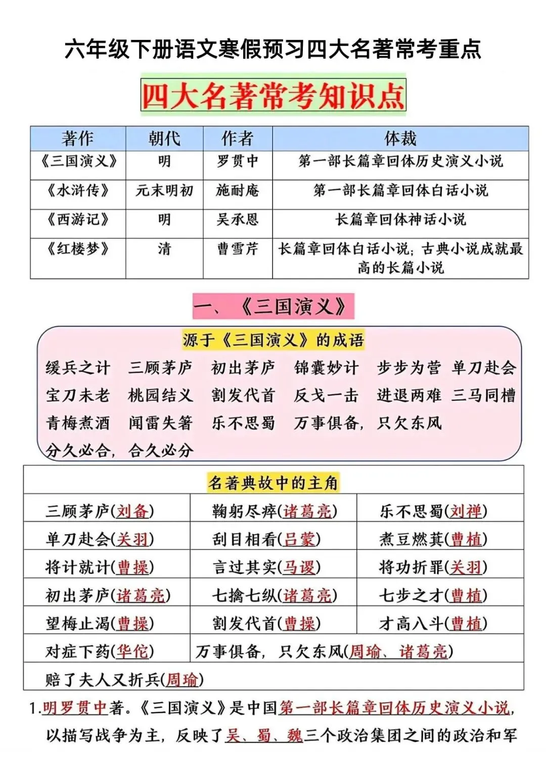 六年级(下)语文 四大名著常考重点(寒假预习)