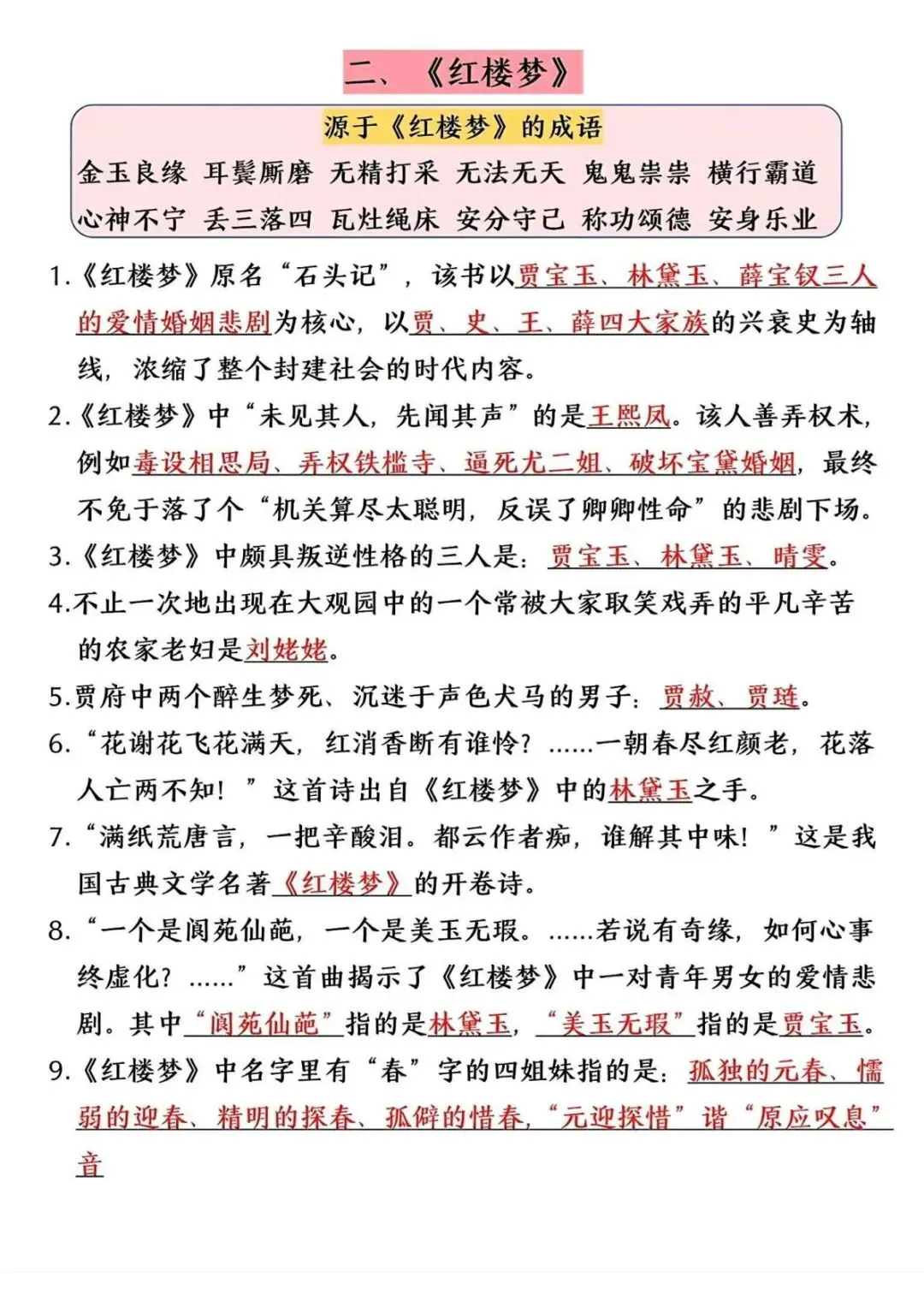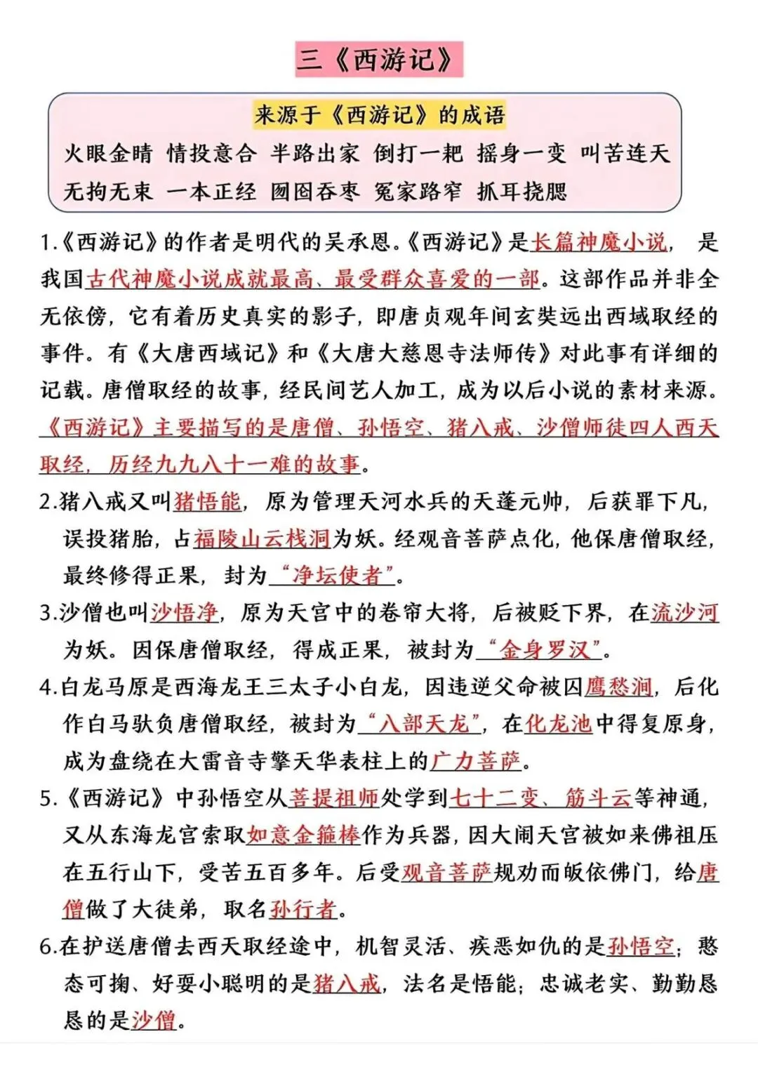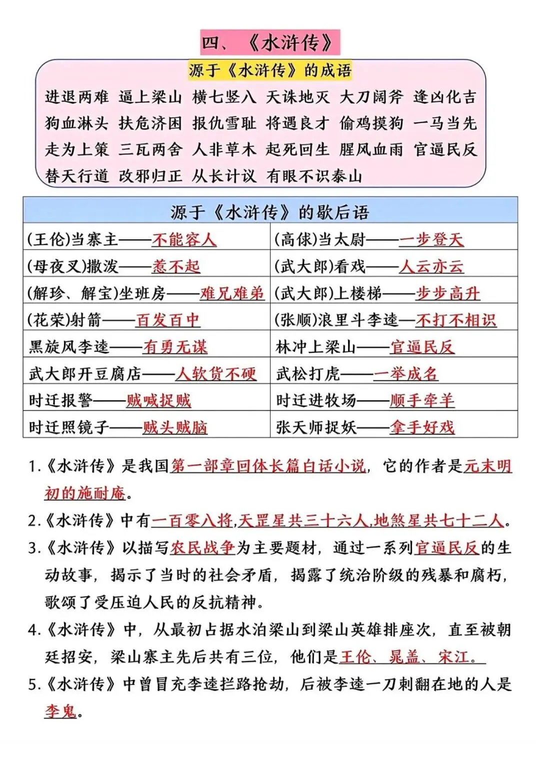 五年级(下)语文 四大名著高频考点