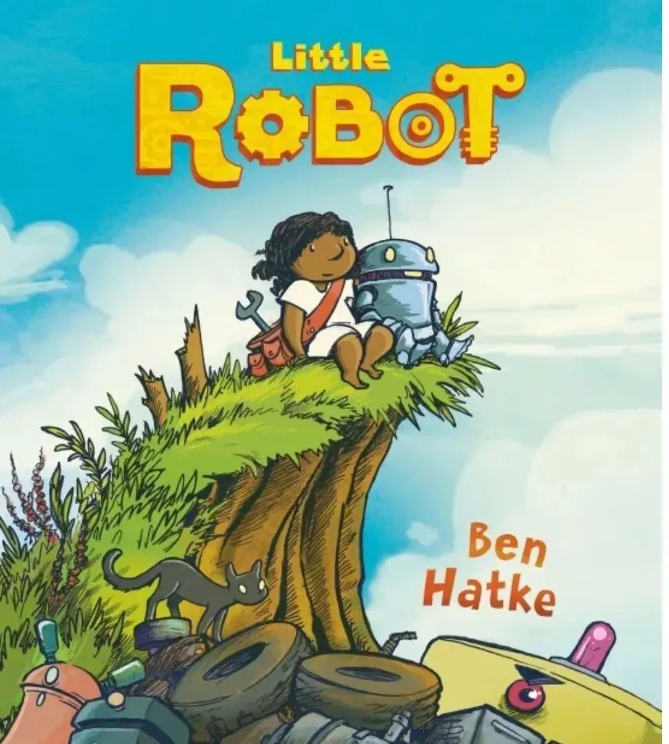 Little Robot (小机器人):这是一部由本·哈特克(Ben Hatke)创作的无字图画书(Graphic Novel),首次出版于2015年。故事讲述了一个孤独的小女孩在垃圾场发现了一个小机器人,并将其修复。当机器人苏醒后,他们成为了最好的朋友,一起玩耍、探索,并共同面对挑战。这本书以其温馨的友情故事和精美的插画深受读者喜爱,曾获得多项荣誉,包括《纽约时报》畅销书奖和奥比奖(Eisner Award)提名。