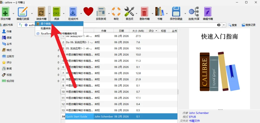 搞到一本好书,欣喜若狂,结果Kindle、手机、平板电脑塞得满满当当,想找的时候却像大海捞针?当然,想找书籍或者其他文件,不妨查看昨天推荐的一款工具:快速搜索文件,简直秒搜。从不同网站下载的电子书、格式五花八门,这个阅读器打不开,那个设备不兼容,简直麻头皮……不晓得大家有没有用过这款管理工具:Calibre,一款堪称电子书管家的神器,今天的主角就是它。在安装前,一定要切换安装路径,别啥都安装到C盘,当然,你的C盘空间足够大,请忽视。点击“Advanced”选项,将默认路径改为你想要安装的位置就行。首次使用,提前创建一个书籍位置,然后加载进来就行,同样的,别放在C盘。Calibre 的核心就是一个强大的数据库,你只需要把电子书文件(无论是什么格式),用鼠标拖进去,就能自动收纳入库。自带阅读器,不过真没几个人用电脑看电子书吧?一般都是用手机来看。它支持超过20种电子书格式的互相转换,包括常见的EPUB、MOBI、AZW3、PDF,以及DOCX、TXT、甚至漫画格式CBR/CBZ等等。