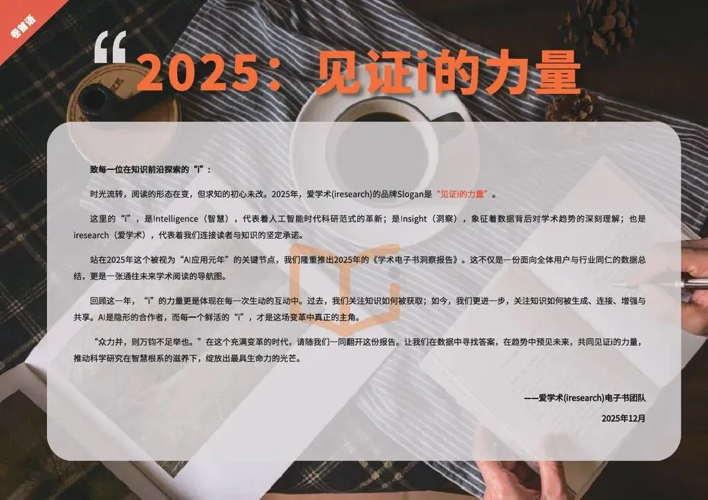 站在2025年这个被视为"AI应用元年"的关键节点,我们隆重推出2025年的<<学术电子书洞察报告>>。这不仅是一份面向全体用户与行业同仁的数据总结,更是一张通往未来学术阅读的导航图。