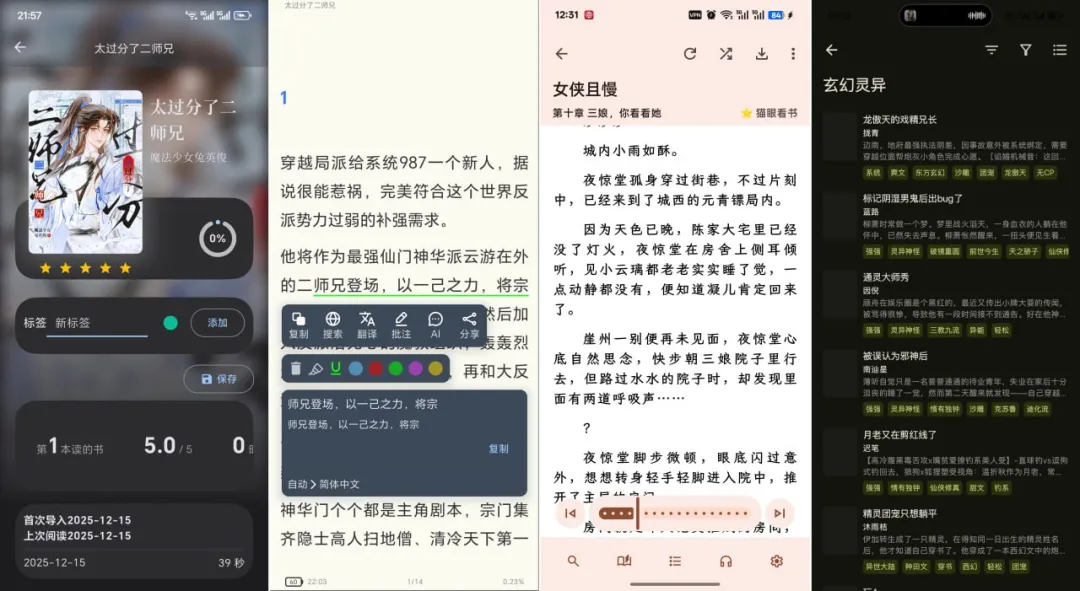这是一个有着AI技术加持的电子书阅读器,支持EPUB、MOBI、AZW3、FB2、TXT、PDF等主流格式,可基于阅读内容生成心智图、提供随需翻译与词典查询、整理章节摘要与视角分析,阅读界面可调节字体、行间距、段落间距、边距、主题风格、对齐方式,还支持字体样式与背景调整,支持标注、笔记、文本转语音、整书中英翻译、简繁转换等特性,另外通过WebDAV实现书籍、笔记与阅读进度的同步,免费开源,适用于Android、iOS、Windows、MacOS多平台 #阅读