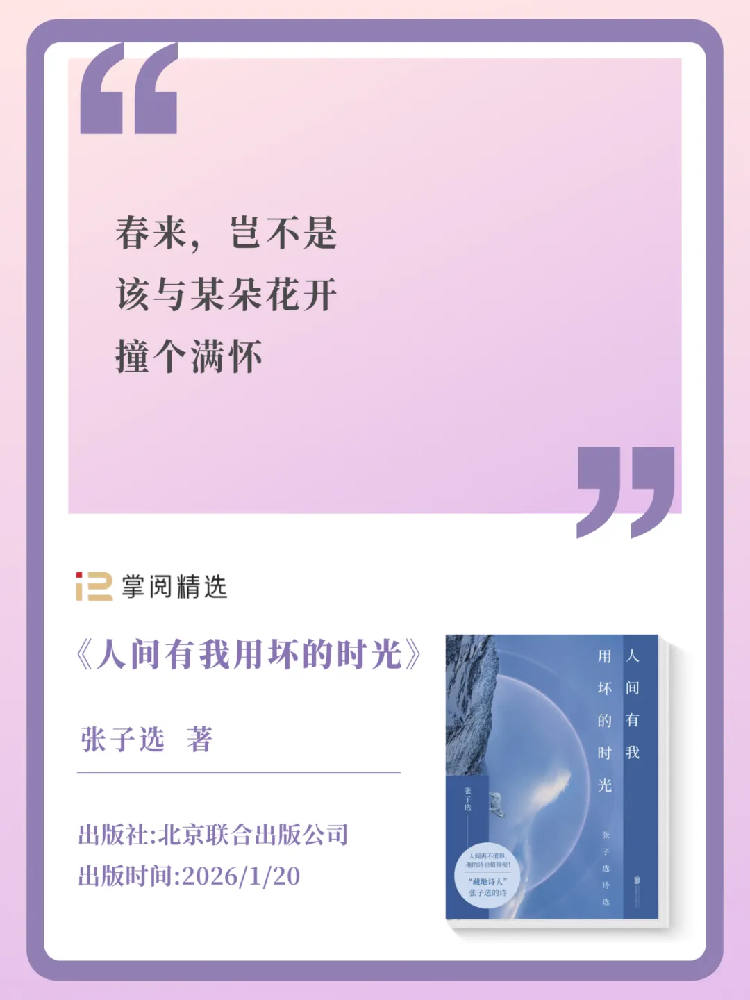 “藏地诗人”张子选2026年最新诗集,他用真挚而辽阔的笔触,写下对生活的深情、藏地的苍茫,以及生命中那些粗粝与柔软的时刻。