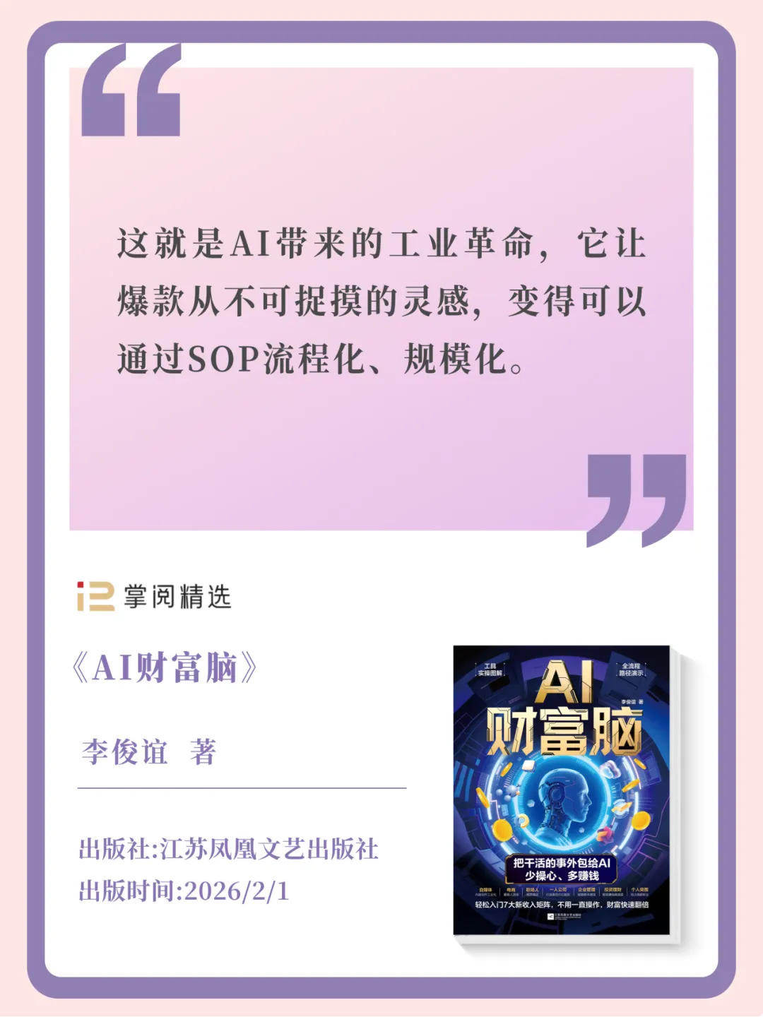 一本教你用人工智能赚钱的实用指南。无论你是创作者、上班族还是创业者,都能找到适合自己的AI赚钱路径,轻松抓住智能经济的新机会。