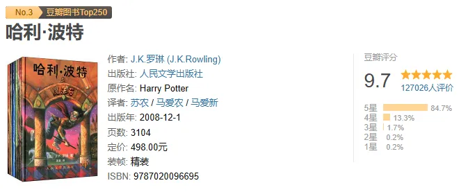 推荐理由:J.K.罗琳构建的魔法世界充满想象力与生命力,从霍格沃茨的奇妙课堂到三强争霸赛的惊险挑战,从伏地魔的黑暗威胁到凤凰社的正义抗争,故事在奇幻冒险中融入成长、勇气、友谊与爱等永恒主题。哈利、罗恩、赫敏等角色在逆境中坚守信念,用善良与勇敢对抗邪恶,既满足了读者对魔法的浪漫想象,也传递了“即使平凡也能创造不凡”的力量,成为跨越年龄与国界的文化现象,影响了一代又一代人对善恶与成长的认知。