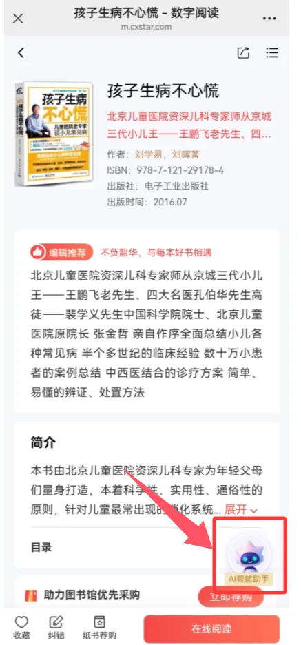 电子书详情页显示AI智能助手图标