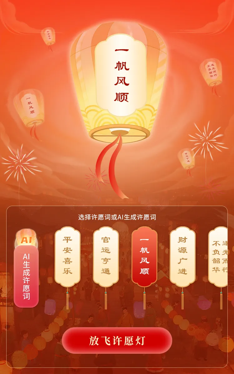 动动手指扫码,就能点亮专属许愿灯,写下心中期许,让心愿随灯冉冉升空。让点点心愿,漫入云端,照亮马年新程,所求皆如愿,所行皆坦途。