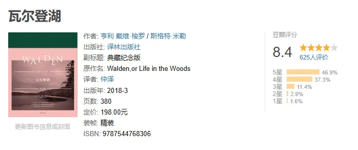 这是一本被清华大学校长写进录取通知书的书,成为无数新生的人生启蒙。梭罗远离尘嚣,在瓦尔登湖畔独居两年,把对生活、自然、自我的思考凝练成文字。