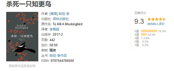10、《杀死一只知更鸟》| 哈珀・李