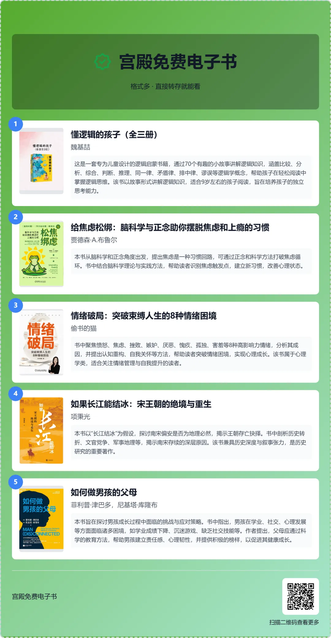 【免费电子书】懂逻辑的孩子,给焦虑松绑,情绪破局,如果长江能结冰:宋王朝的绝境与重生,如何做男孩的父母