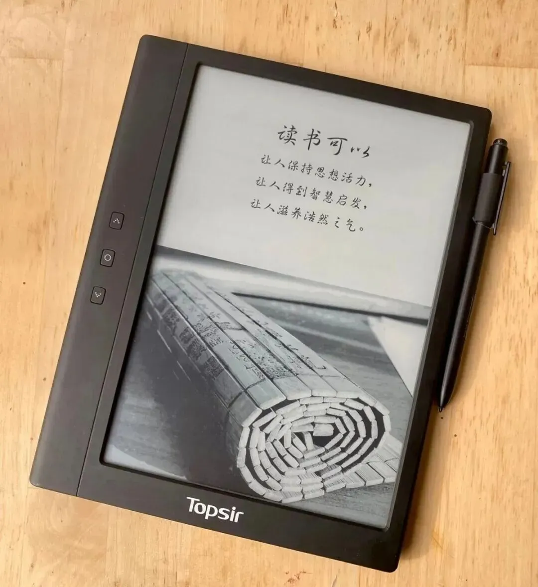 还有个细节是左侧放了翻页的物理键,看书或者记笔记时手握住一边就能翻,屏幕不用每次都点,节奏稳稳的。