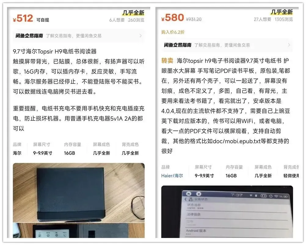 有一天准备跟大家说一声先别急买,偏偏一位粉丝丢给我一个型号,消息看了几遍,当晚把资料和实测视频都翻了,关键词一个个对上,海尔topsir H9,9.7寸墨水屏,背光有,价格二手基本五百左右,这一串信息对照下来,心里那根弦稳住了。