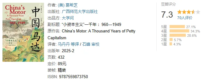 2.提出“小资本主义”生产方式,重新界定推动中国历史发展的经济因素。本书将“小资本主义”生产方式定义为基于家族和市场进行的生产,并将其视作中国古代社会发展的动力机制(中国“马达”);