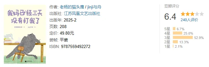 “发疯文学”和“躺平文学”的现象背后,是当下年轻人背负很大压力的社会现状。作为心理励志类书籍的作家,老杨的猫头鹰在《成年人的世界没有容易二字》《世界很喧嚣,做自己就好》等作品中总是以反焦虑反内卷的文字获得读者们的共情。 为了更好地帮助年轻人释放压力,他将生活里的爆笑日常画成一个个小漫画,创作出《我妈已经三天没有打我了》这本为解压而生的漫画集,以暖萌的画风和搞笑的对话,记录日常生活不完美但可爱的时刻。 书中的主人公是一只名叫不晚的灰色小猫,他有着奇怪的脑回路,总在妈妈的雷区蹦跶。充分展现着小孩子的不乖、爱捣蛋,甚至欠揍的天性,但也正因为他特有的懵懂,让这一切看起来都显得十分可爱与搞笑。而每一个都曾是小朋友的我们,也能够在这些“蠢事”中,找到自己成长的影子,甚至学到和生活相处的方法:不跟不讲理的人讲道理,不和没规矩的人讲规矩,不与缺教养的人比教养。当然最重要的是,希望大家能够在高压的生活中,通过轻快的阅读卸下心理负担,获得继续生活的能量。谨以此书,献给我们一起畅聊推理的岁月。——战玉冰