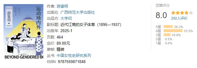 中国女性运动史领域研究专家游鉴明扛鼎之作,呈现近代中国女子体育的发展演变及其所承载的社会文化内涵。