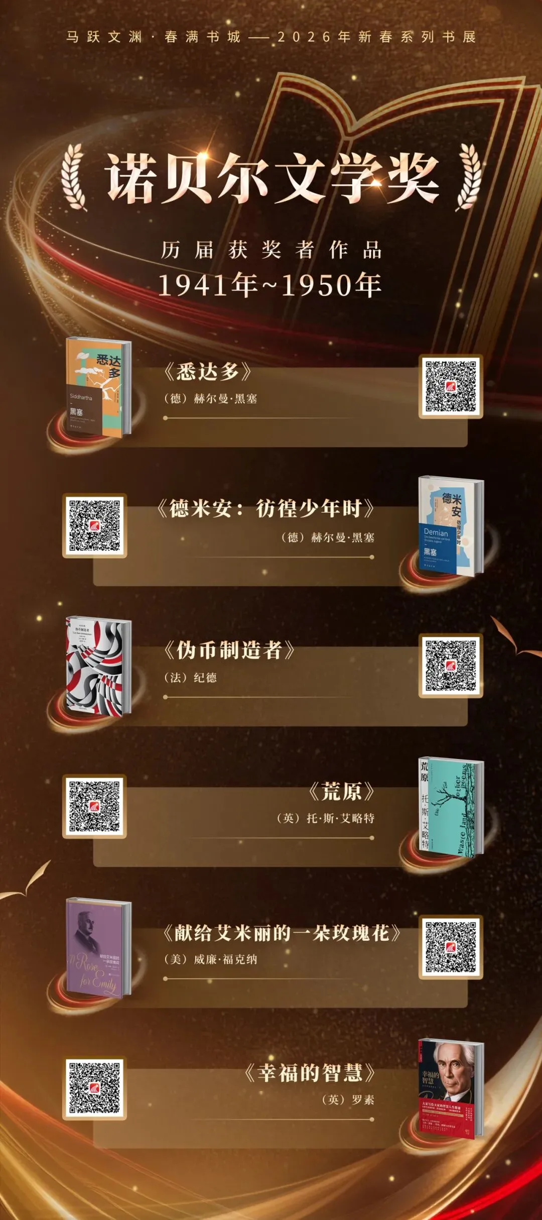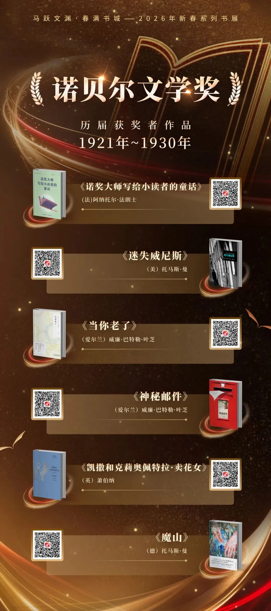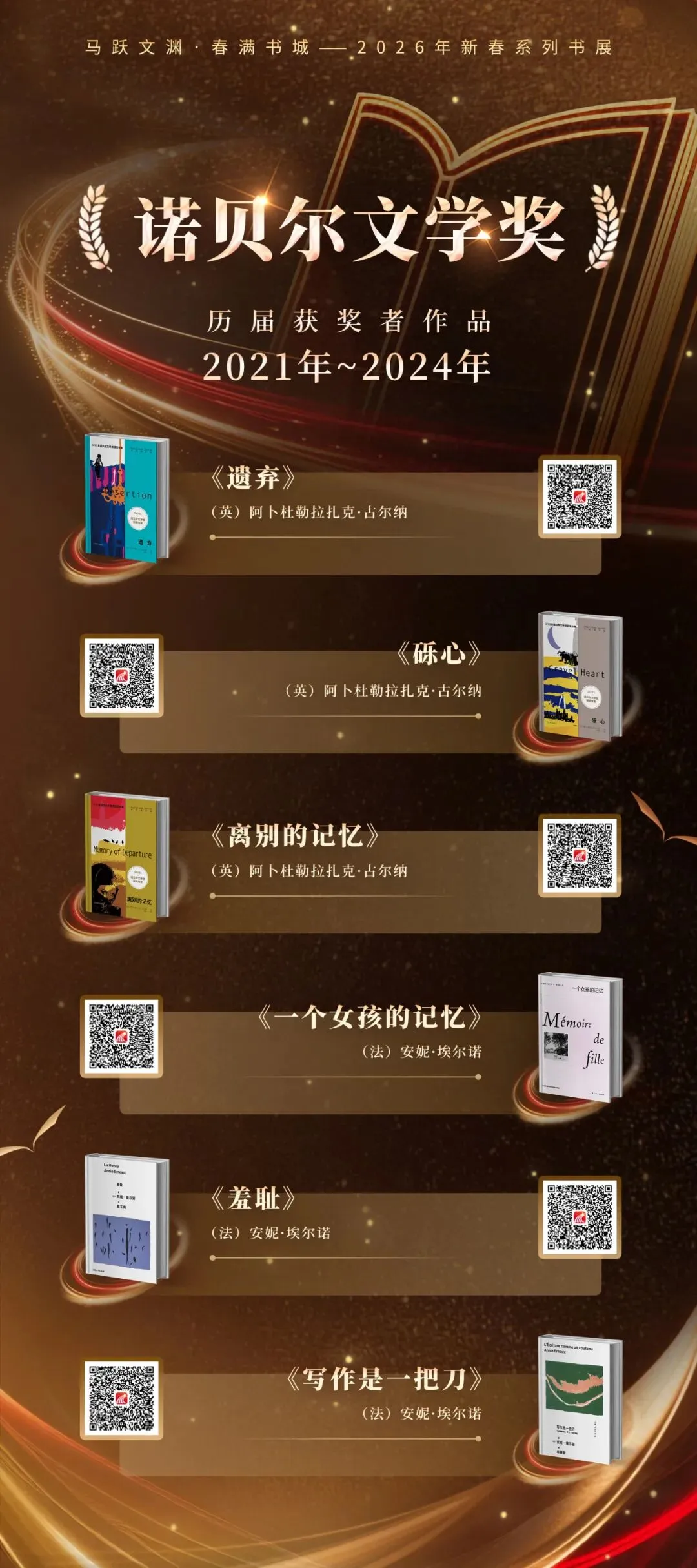 本展荟萃诺贝尔文学奖获奖者作品、历届鲁迅文学奖及精神文明建设“五个一工程”奖的代表佳作,特别聚焦2025年诺奖得主克拉斯诺霍尔卡伊·拉斯洛的深邃书写,邀您一同走进这些引领文明、映照时代的传世经典。