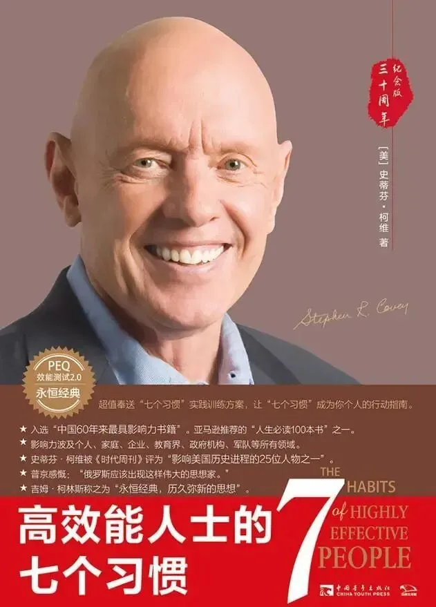 《高效能人士的七个习惯》(英文名:"The 7 Habits of Highly EffectivePeople")是由美国作家史蒂芬·柯维(Stephen R.Covey)所著的一本个人成长和管理学领域的经典书籍。书中提出了七个习惯,旨在帮助个人和组织实现效能的提升。
