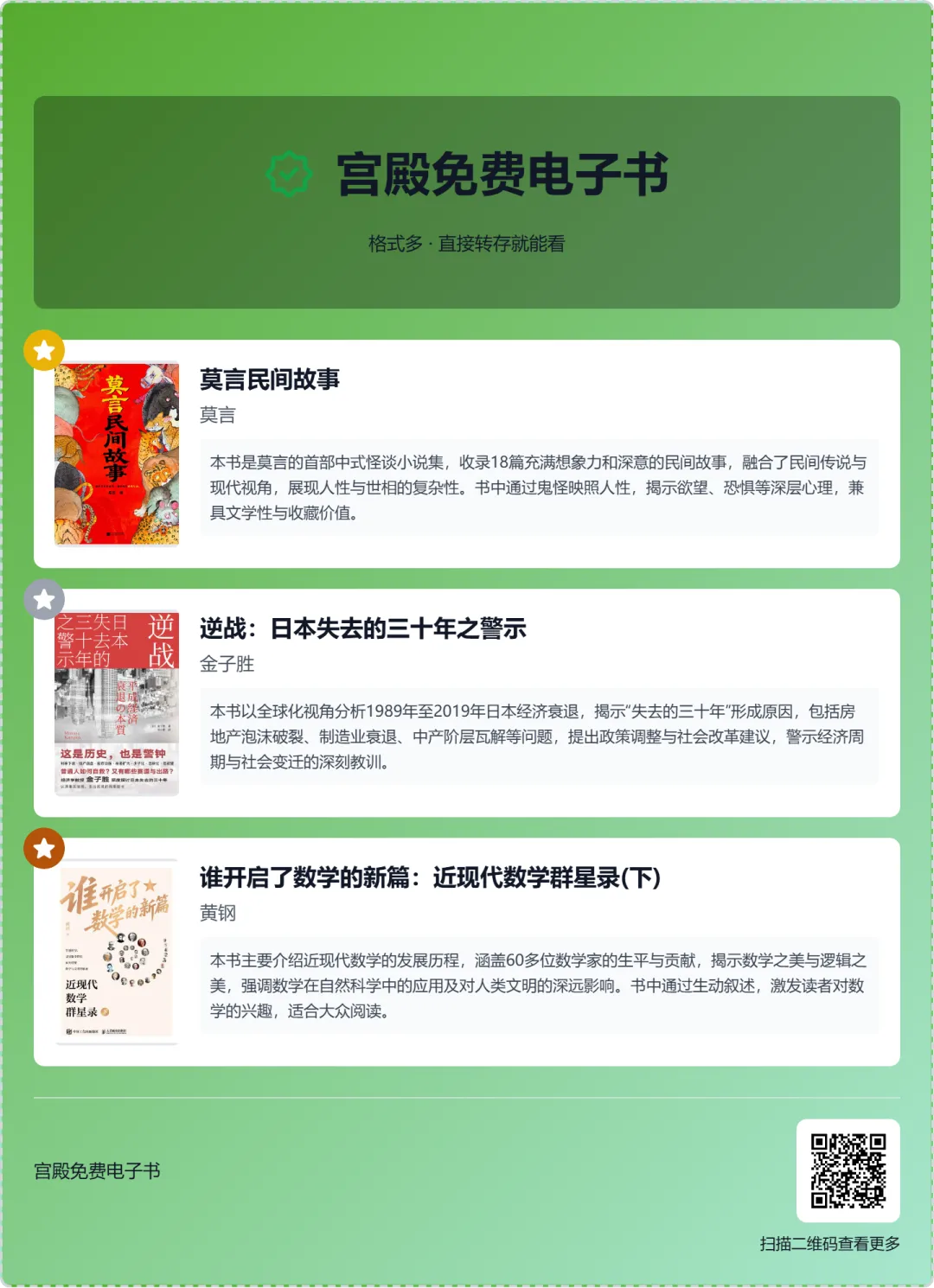 【免费电子书】莫言民间故事,逆战:日本失去的三十年之警示,谁开启了数学的新篇:近现代数学群星录(下)