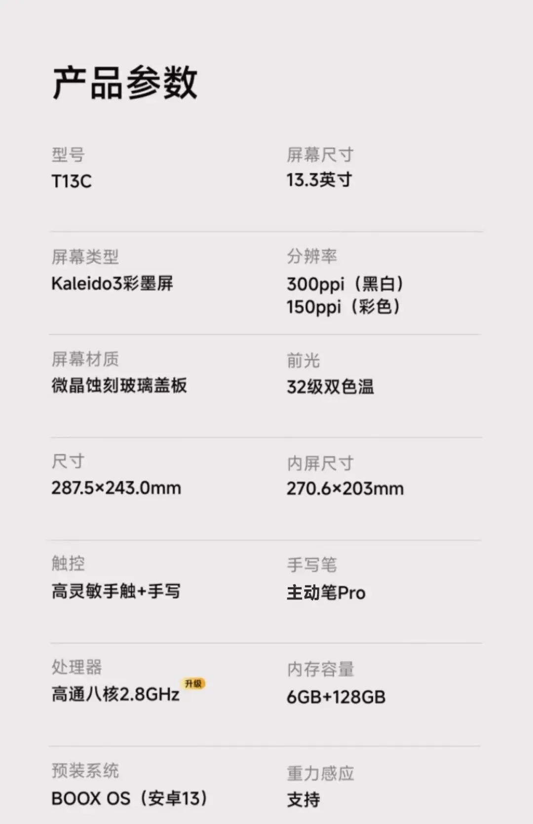 文石BOOX T13C电子书阅读器 13.3英寸彩色墨水屏 AI快刷轻薄办公平板