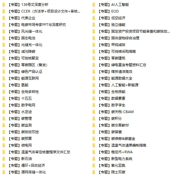 这些资料时间跨度从2021-2026年,范围覆盖双碳、ESG、能源、电力、储能、建筑、交通、金融、人工智能、低空经济等,类型涵盖政策、研报、数据、专家PPT、项目方案、各类标准、学术研究以及专题汇总。