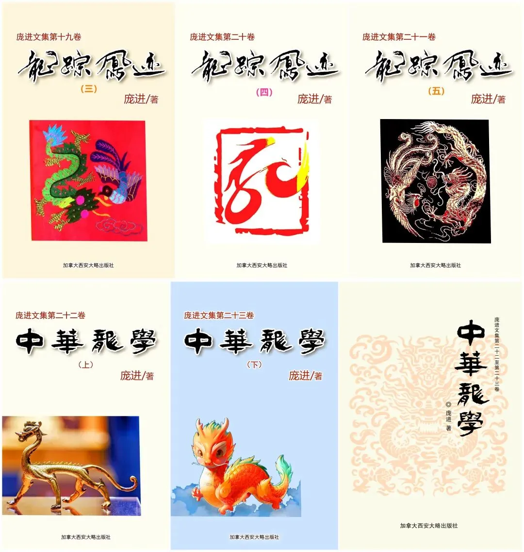 如《中华龙学》:该著凝聚了庞进近四十年的研究智慧,系统梳理了中华龙文化的演进脉络。全书50万字,内容涉及哲学、生物学、考古学、民族学、民俗学、艺术学等十余个学科领域,展示了跨学科的综合性与前沿性。书中不仅探讨了龙在道学、儒学和佛学等文化视角下的表现,更提出了“中华龙学”庞氏理论架构,开创了这一领域的系统研究。是以学术化的方式深入探讨了中华民族的核心符号——龙的丰赡内涵,堪称对中华文化的又一次深刻解读。《中华龙学》填补了龙文化系统研究的空白,具有重要的学术价值。它不仅为学术界提供了详实的参考资料,也为广大中华文化爱好者和研究者搭建了学术铺垫。这本书的出版,标志着中华文明走向世界的重要一步,推动了全球对中华文化的深入了解。(《中华龙学庞进著作填补空白,加拿大出版助力中华文化走向世界》,“搜狐”,
