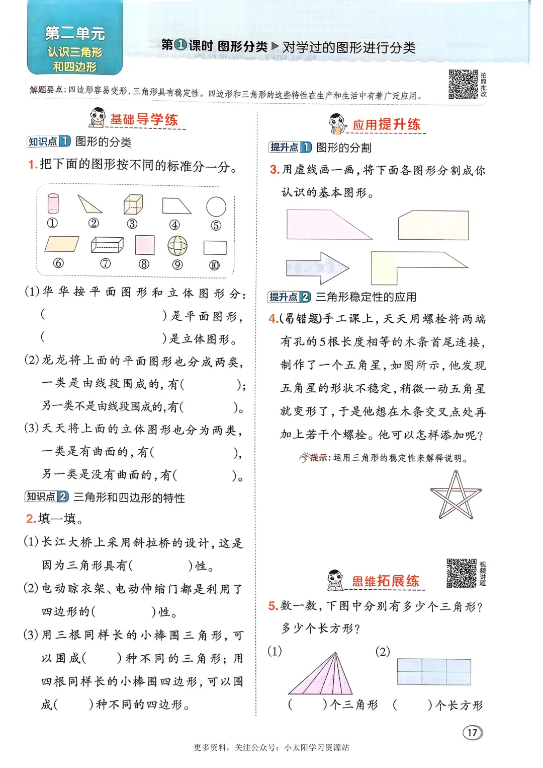 本系列是针对四年级下册每一课时的内容,跟大家共享电子教材和每节课的微课,以及自己的一些初浅想法,并附上配套的练习,如果有孩子刚好需要预习或者回顾复习可以自取。今天是这篇是第二单元第1课时,《图形分类》。🦊共读书香📚