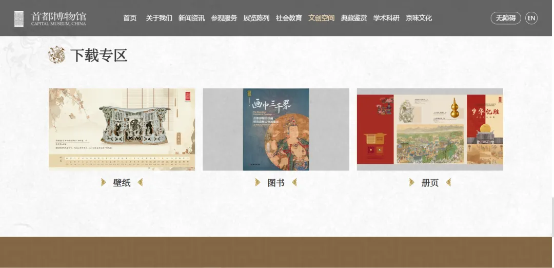 有的朋友可能要问了,如何下载呀?已经迫不及待了。首先打开首都博物馆官网,找到如下图所示菜单栏,点击“下载专区”。