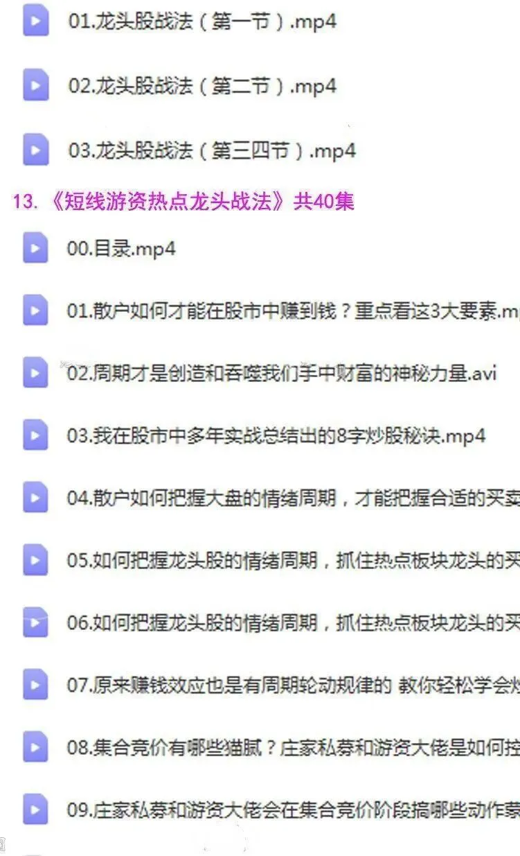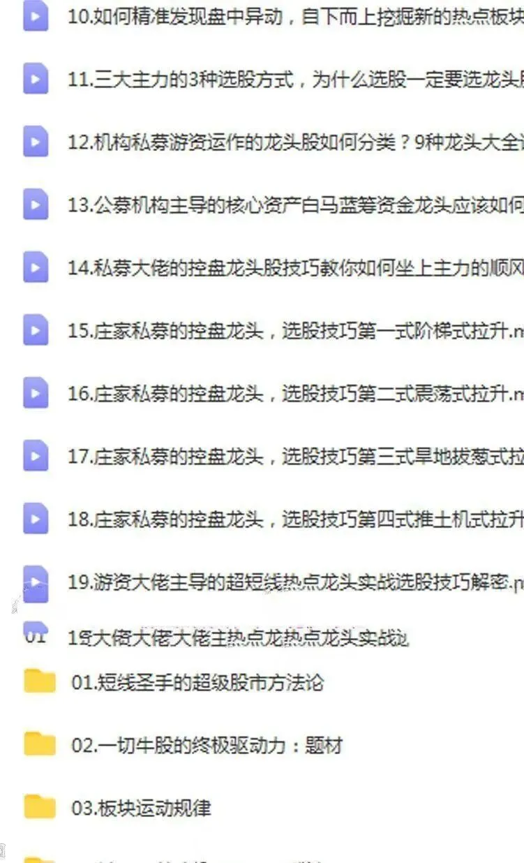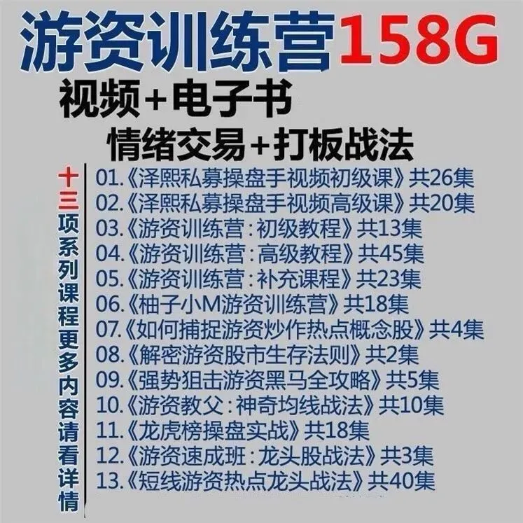 >【资源】游资训练营158G视频+电子书+情绪交易+打板战法