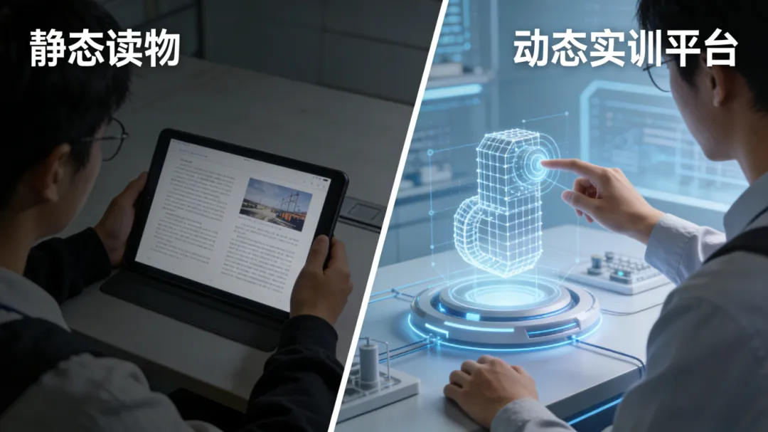 电子书的核心功能是 “读”,学生只能被动浏览文字、图片内容,难以产生深度参与感,更无法满足职业教育 “做中学、学中做” 的实操需求。而强交互性是数字教材区别于电子书的核心标志,它让教材从 “静态读物” 变成 “动态实训平台”。