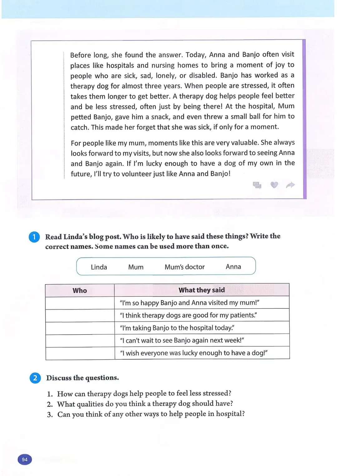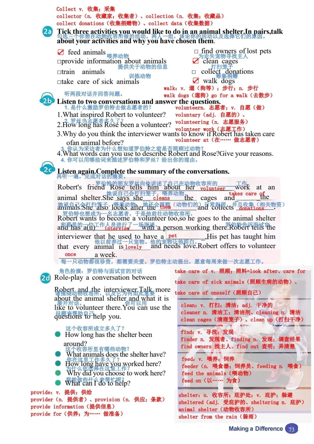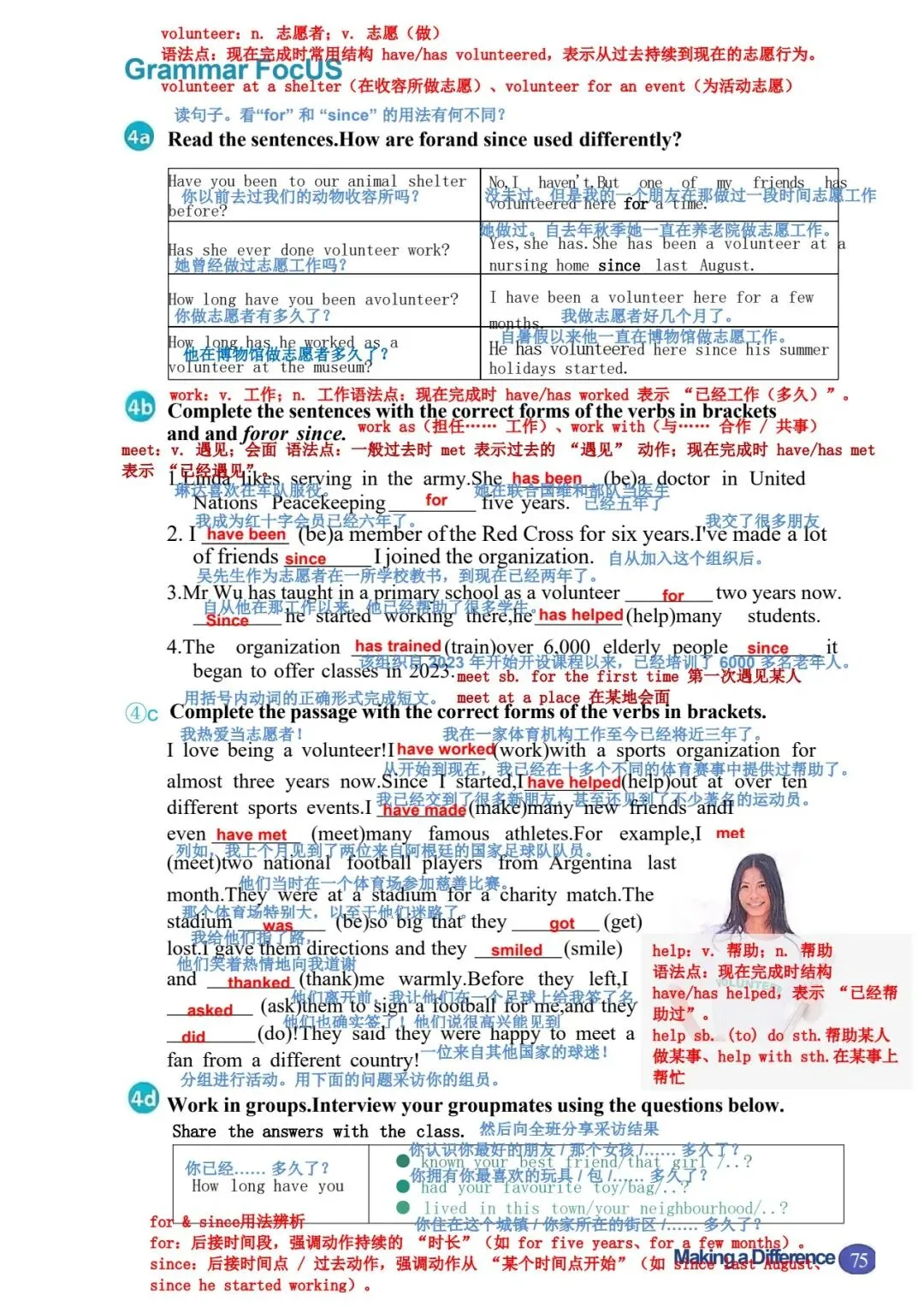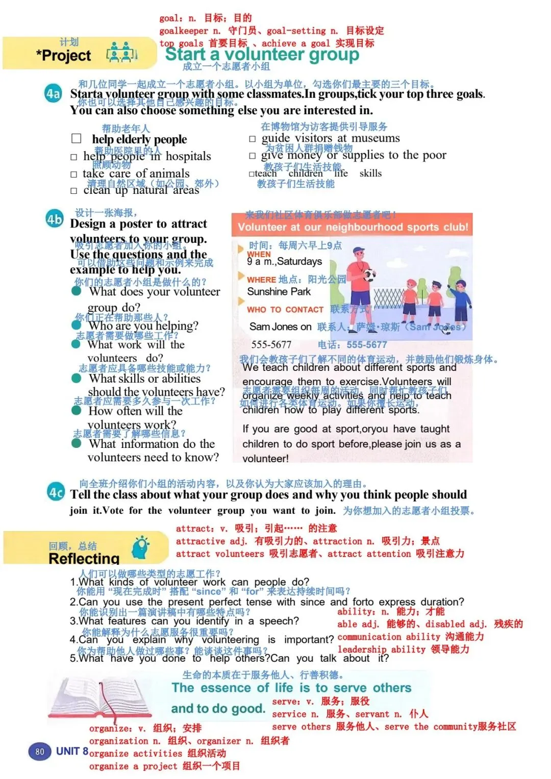 1b 阅读蓝天救援队一名志愿者的演讲。演讲者使用了什么样的引子?哪一段包 含行动号召? 女士们、先生们,感谢你们今天邀请我来和大家讲讲蓝天救援队。让我从自己的 故事讲起。 2008 年,我和一些朋友在山里徒步旅行时,其中一个人摔倒了,头部受了重伤。 我们必须尽快寻求帮助,所以我们拨打了紧急电话。天已经黑了,我们甚至都看 不清自己在哪里。过了一会儿,我们听到了狗叫声和蓝天救援队队员的声音。我 差点哭了出来。我们非常感激他们找到了我们! 我从未忘记那一天。从那以后,我也想帮助别人。我在 2009 年报名加入了蓝天 救援队,从那以后就一直是一名志愿者。我们去过学校和其他社区,教儿童和成 年人如何保持安全并为最坏的情况做准备。我们也在紧急情况下救援过人们。我 们提供过医疗援助,还在自然灾害后搜寻过失踪人员,比如 2013 年的雅安地震 和同年菲律宾的台风灾害。2023 年,我们甚至还去了远在土耳其的地方提供帮 助! 做志愿者教会了我许多实用的救生技能。它也帮助我理解了团队合作的力量,因 为这是成功救援的关键。最重要的是,做志愿者让我懂得了每个生命的价值。 这份工作很艰难。它是志愿性质的,所以我们没有报酬。我们经常没吃的、没觉 睡。但我们的目标一直是尽可能多地拯救生命。我只是一个普通人,但我会冲向 危险,就像蓝天救援队的每一个人一样。对于我们拯救过的人以及他们的亲人来 说,我知道我们是他们的英雄。而这让我们所做的一切都值得。我们想做更多, 但我们不能单靠自己做到。你们愿意作为志愿者加入我们吗?我们一起就能有所 作为! |