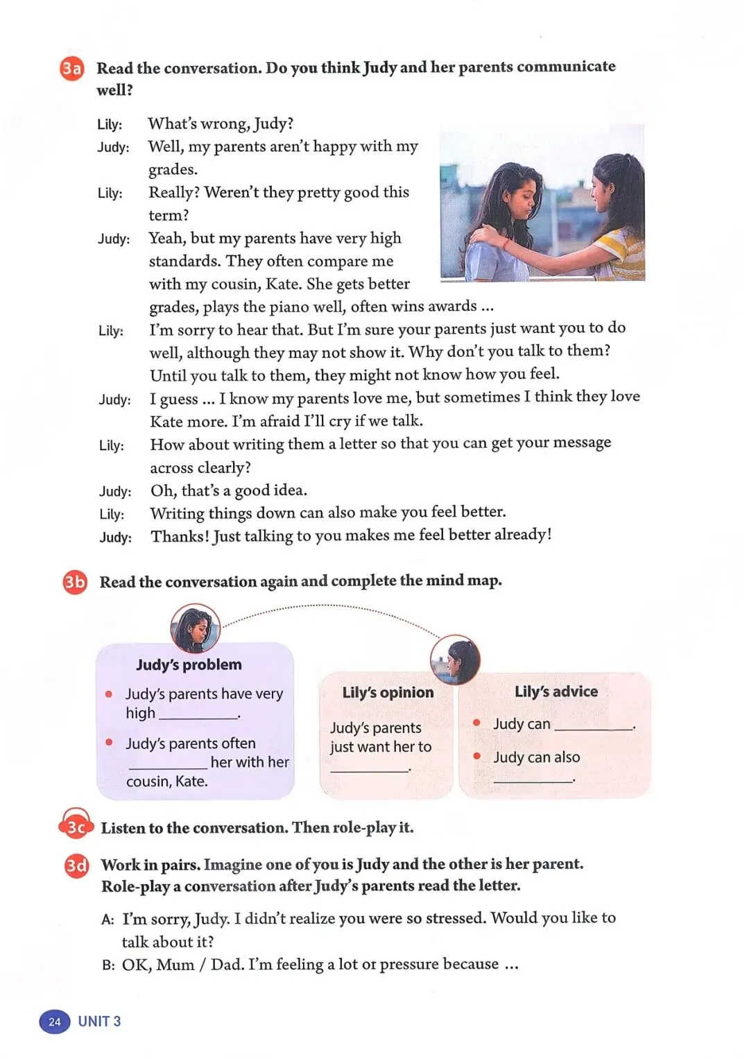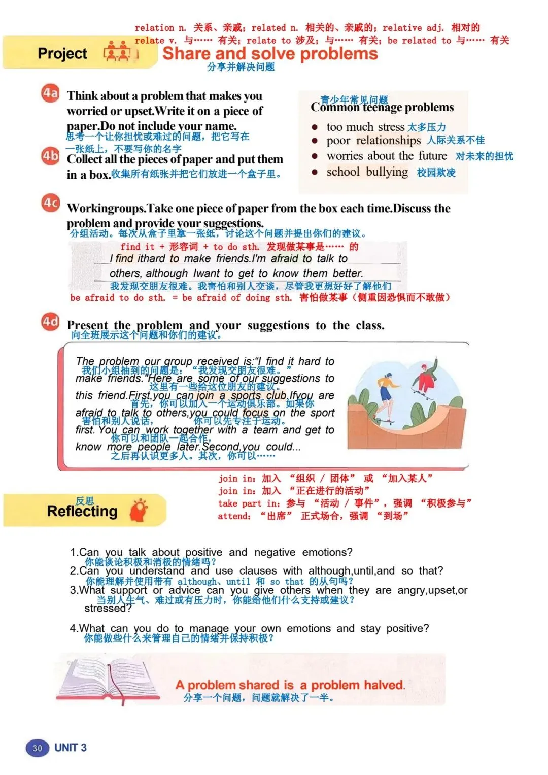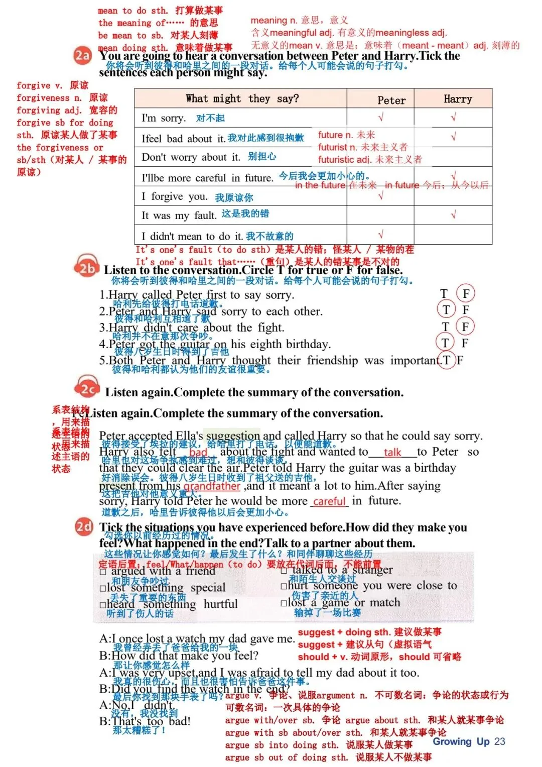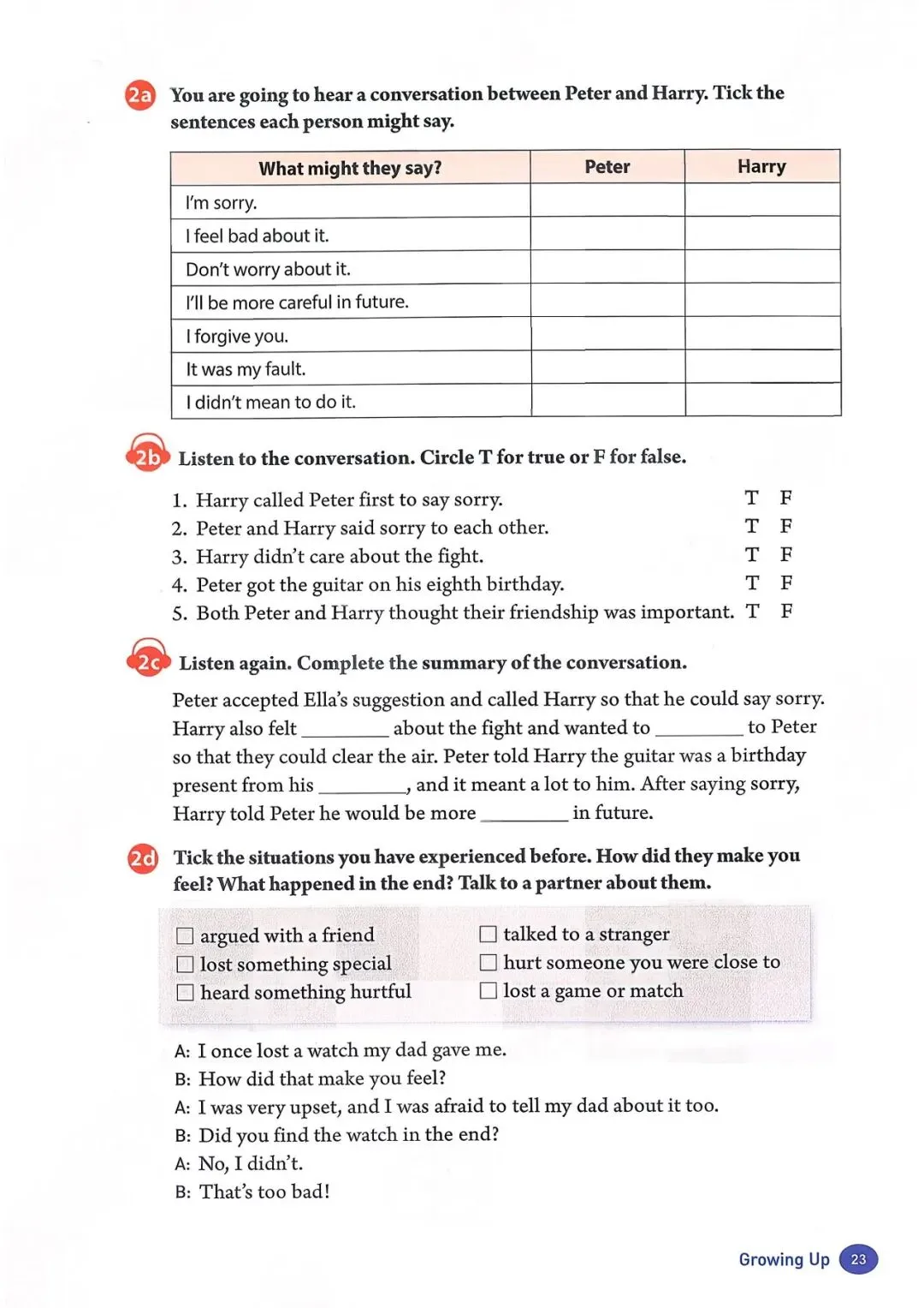 你不可能常胜 铃声响起时,马特心情沉重地走进教室。“嘿,马特,” 他最好的朋友汤姆跟他 打招呼。他和汤姆都在学校篮球队。“为什么闷闷不乐?你还在为周六晚上的比 赛感到难过吗?” 汤姆问道。 “我当然难过,” 马特轻声说。他说话时都不敢看汤姆。“我真的很抱歉让大家失 望了。对方球队因为我才得到那些分数。” “别对自己太苛刻了!” 汤姆说,“虽然你推了他们的球员,但那只是个意外。大 家都知道的!” 汤姆是个好朋友。但马特知道裁判和汤姆看法不同。当裁判看到马特推了另一名 球员时,给了对方球队两次罚球机会。事故发生时,马特和其他人一样震惊,但 为时已晚,他无法挽回了。 “我想我们得尊重他的判罚,” 过了一会儿,马特说,“但在我犯那个错误之前, 我们本来很有机会赢的。我为什么不更小心点呢?我真该自责!真的该自责。” “听着,马特,” 汤姆说,“试着往好的方面想。另一支球队是我们地区最好的, 但我们的比分真的很接近。我为我们感到骄傲,而且我知道我们的教练和学校里 的其他人也一样。” 马特感觉好了一点。“谢谢,汤姆。我想输了比赛就是很难受。” “嘿,你不可能常胜,” 汤姆说,“更重要的是从错误中学习,这样你以后就不会 再犯了。我们会继续作为一个团队一起努力。人人为我,我为人人,对吧?” “你说得对。如果我们齐心协力,下次我们应该能赢,” 马特笑了。他很幸运有 汤姆这样的朋友! |