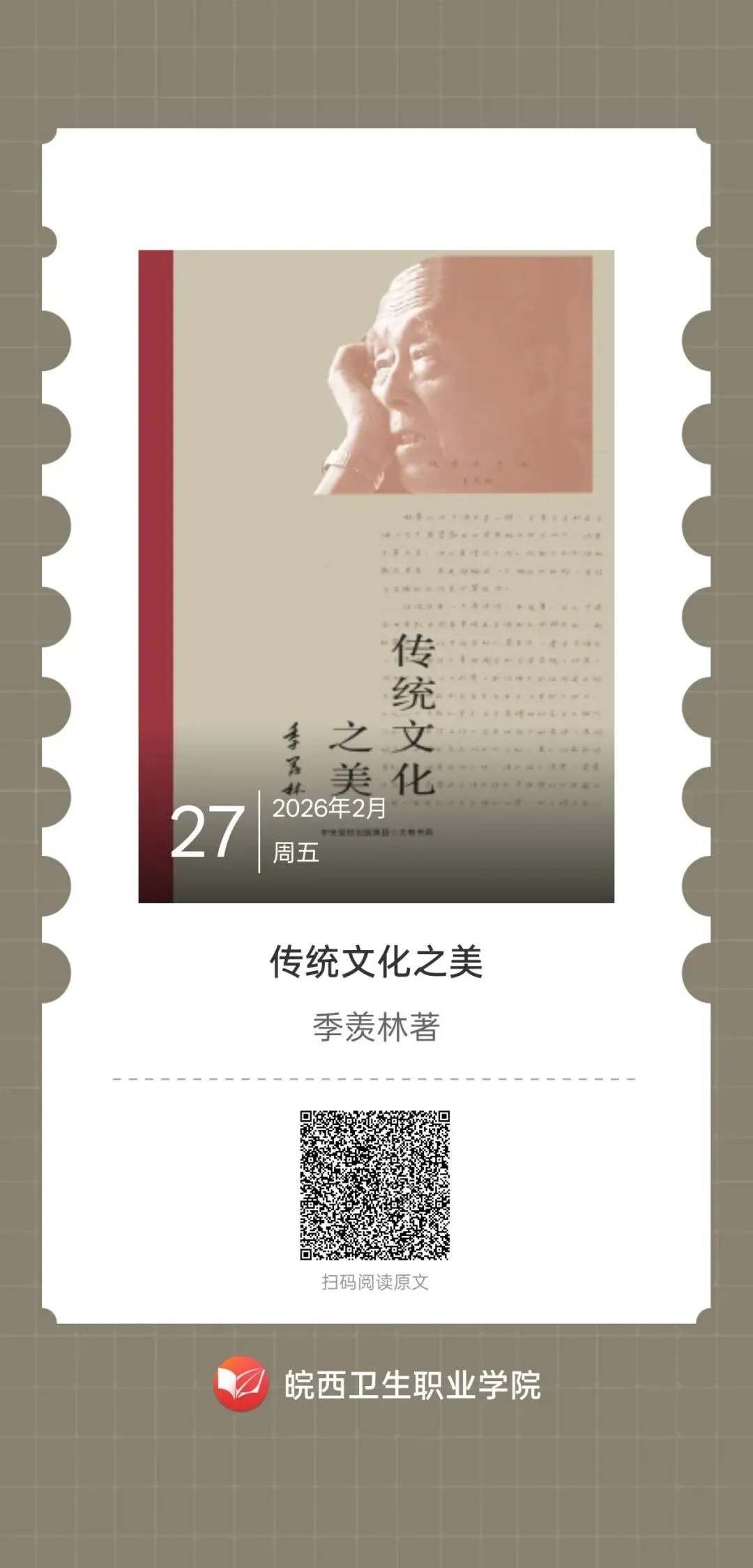 推介语:本作是季先生关于中国传统文化的散文精选,主要从国粹、名胜古迹、中外文化交流、文人风骨和中国传统道德五个方面谈了作者对于中国传统文化的看法:或是针对当时的某一社会现象有感而发,或是作者自身对于中国文化的切身感受与体悟,言辞质朴,情感真切,每一篇都洋溢着作者对于中华民族与中国传统文化的挚爱,是传承中华优秀文化、建立文化自信的优质读物。