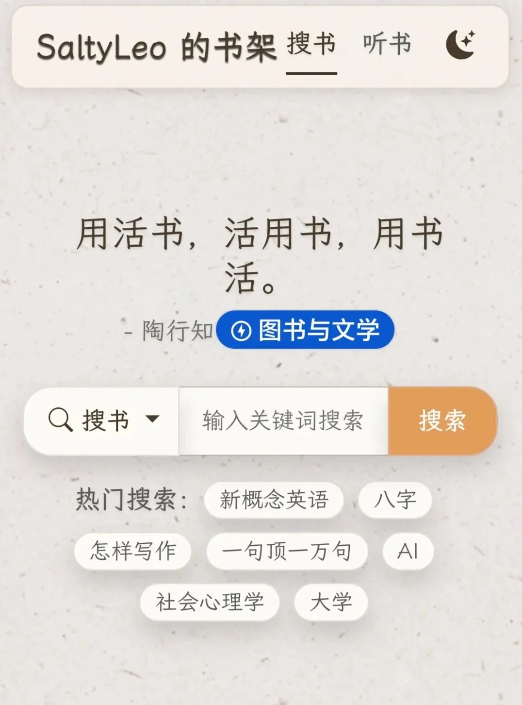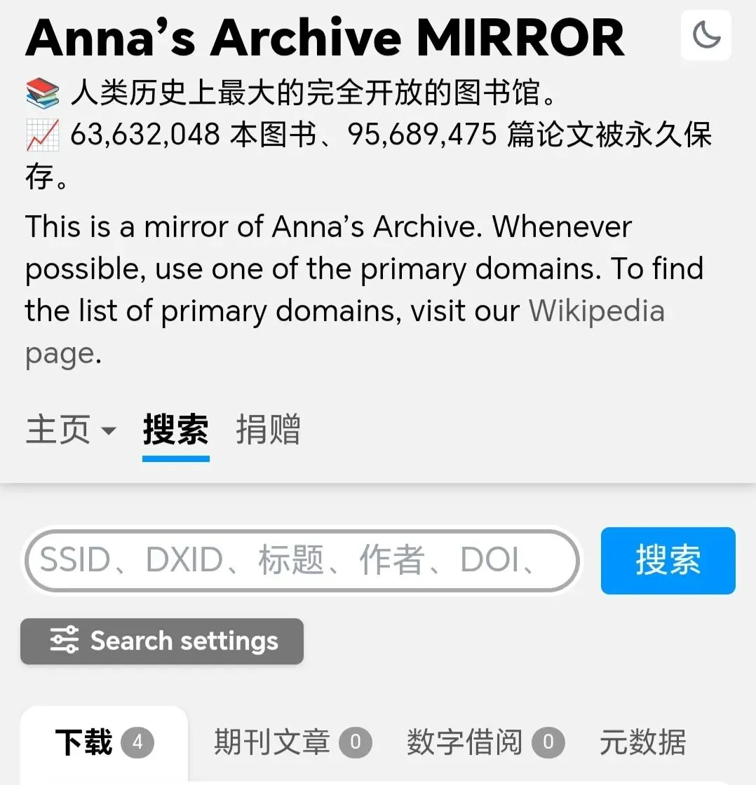 Z-Library(全球最大的电子书图书馆之一)目前收录的电子书数量超过1400万册,同时还包含8400万篇学术文章。该网站涵盖多种语言和格式,支持书名、作者、ISBN等多维度搜索。“安娜的档案”(Anna's Archive)是一个致力于整合全球电子书、学术论文及数字文献的开源项目。作为影子图书馆的元搜索引擎,不直接存储书籍,而是聚合Z-Library、LibGen、Sci-Hub等多家电子书库及学术数据库资源,为用户提供一站式搜索服务。Anna's Archive已永久保存超6300万本书籍及9500万篇学术论文,涵盖电子书、期刊论文、杂志、漫画、古籍、地方志等多种类型,尤其在中文资源方面,整合了读秀、CADAL等国内重要学术数据库。Anna's Archive提供多种格式下载(如PDF、EPUB、MOBI),并附带磁力链接或种子文件,便于批量下载与备份。Anna's Archive是我最常使用搜索🔍电子书的网站,亲测高效!SaltyLeo收录数百万册电子书,整合了ManyBooks、Project Gutenberg、Z-Library等多个电子书源的元数据,支持一站式搜索。