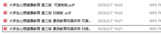 >【电子书推荐】大学生心理健康教育 第三版 教材+素质教育拓展手册 PDF 电子版 电子教材 高清无水印 百度云下载 大学本科考研教材
