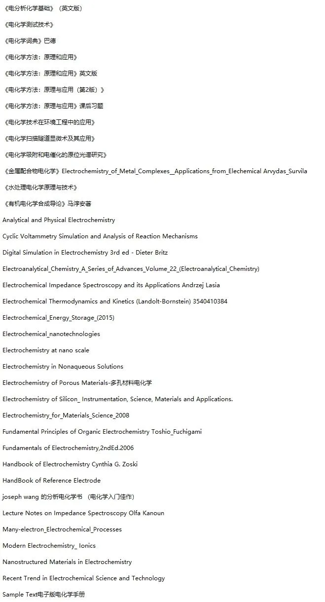【电化学合集】100本电子书+电化学工作站全套资料!