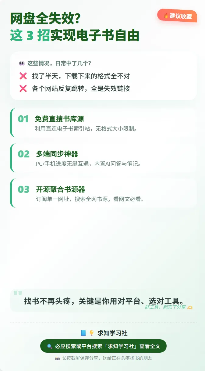 想找一本电子书,却在各个网站间反复跳转,下载的格式还不对?其实免费电子书下载并不难,关键在于用对搜索网站和阅读工具。下面整理了几个国内可直连的电子书资源网站,以及几款全平台通用的阅读软件推荐,帮你真正实现"电子书自由"。